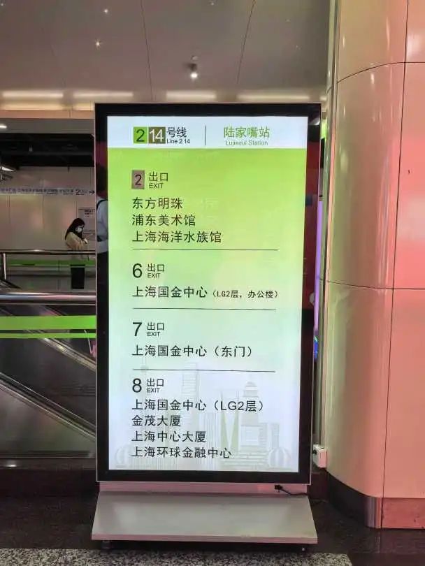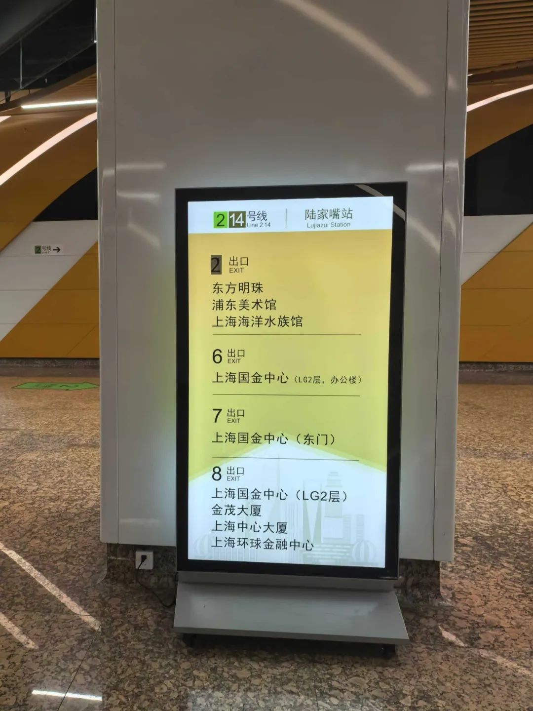 对于周边有大型金融商业和文化旅游地标的陆家嘴站,增设站内综合信息牌灯箱,更直观地引导乘客前往目的地,提升出行效率。