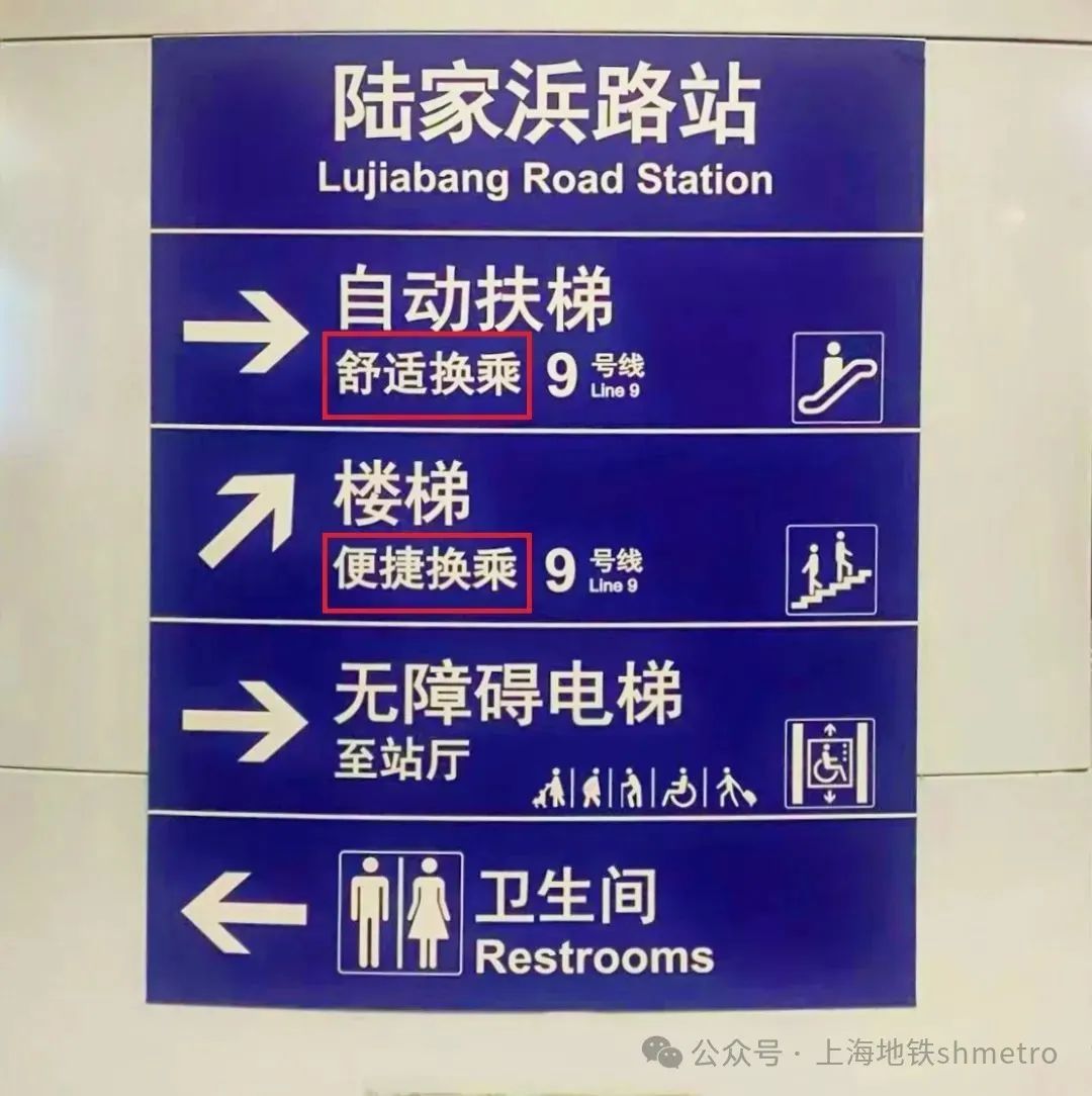 市民乘客的每一次点赞认可,不仅是对我们工作的最好褒奖,更是支持我们前行的最大动力。认真倾听广大乘客的意见建议,进一步总结经验做法,近期,在陆家浜路站推出换乘指引2.0版本。在原有基础上进行优化升级,重新设计版面,增加服务设施导向信息。在自动扶梯和楼梯口的悬挂式导向牌上,新增换乘方式指引,让车站导向更加直观清晰。