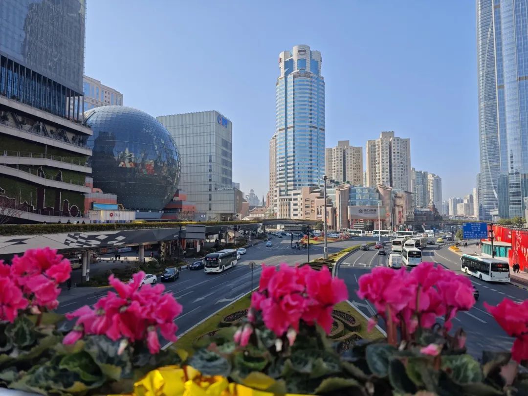 沿街的花箱里郁金香含苞待放,马路中央霹雳石竹尽情盛开,人行天桥被布置成了一条“花路”,仙客来、郁金香、康乃馨、雏菊等红橙色系花卉一溜排开,春意盎然。据了解,为迎接即将到来的春节,区绿容局在徐家汇片区、衡山路沿线、肇嘉浜路沿线、上海南站等区域进行节日氛围布置,其中包括徐家汇天桥连廊摆花,在绿地中挂灯笼、中国结等传统挂饰,同时对道路沿线花箱进行布置,选用仙客来、郁金香、霹雳石竹、茶梅、杜鹃等花卉品种,营造浓厚的过年氛围。