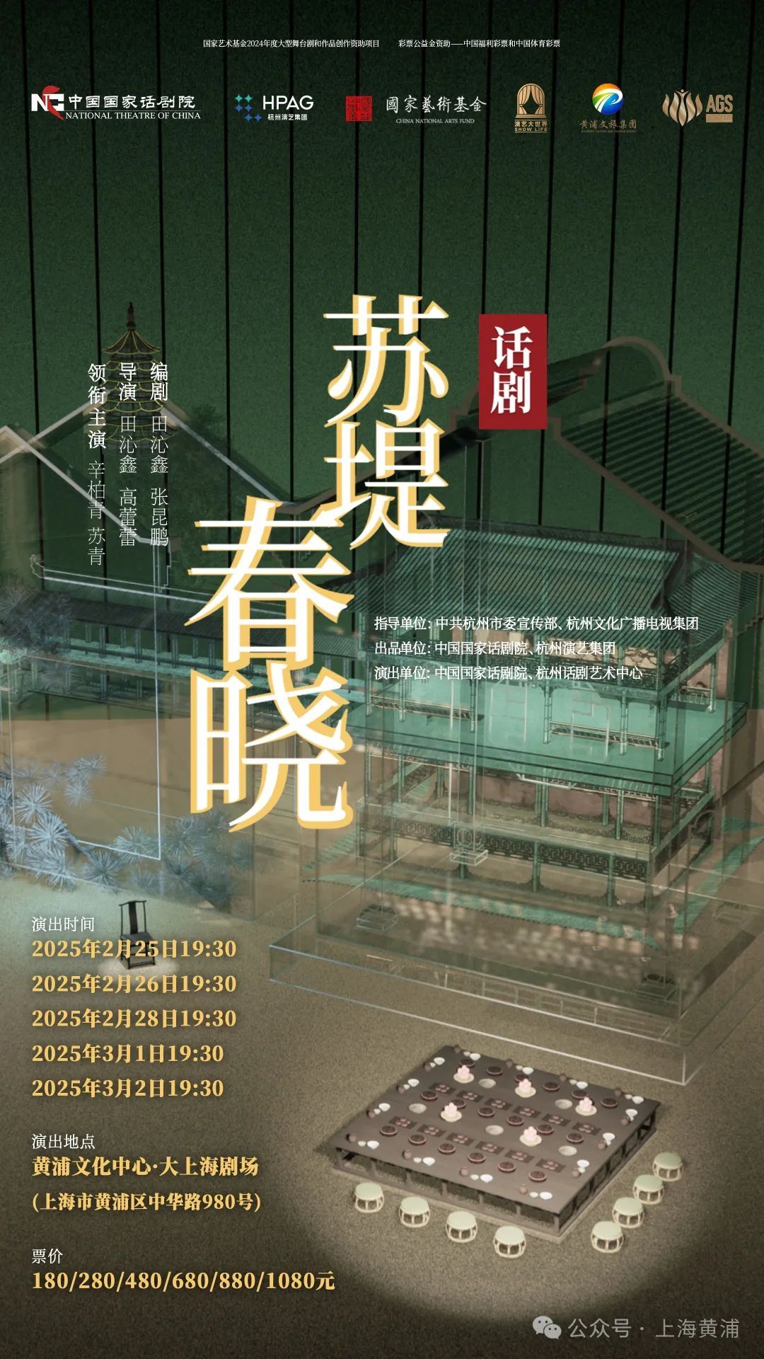 2月25日至3月2日,由中国国家话剧院与杭州演艺集团共同出品,田沁鑫、张昆鹏担任编剧,田沁鑫、高蕾蕾联合执导,中国国家话剧院优秀演员辛柏青、苏青领衔主演的话剧《苏堤春晓》将在新落成的黄浦文化中心·大上海剧场带来上海首演。1月24日起,演出正式开票。