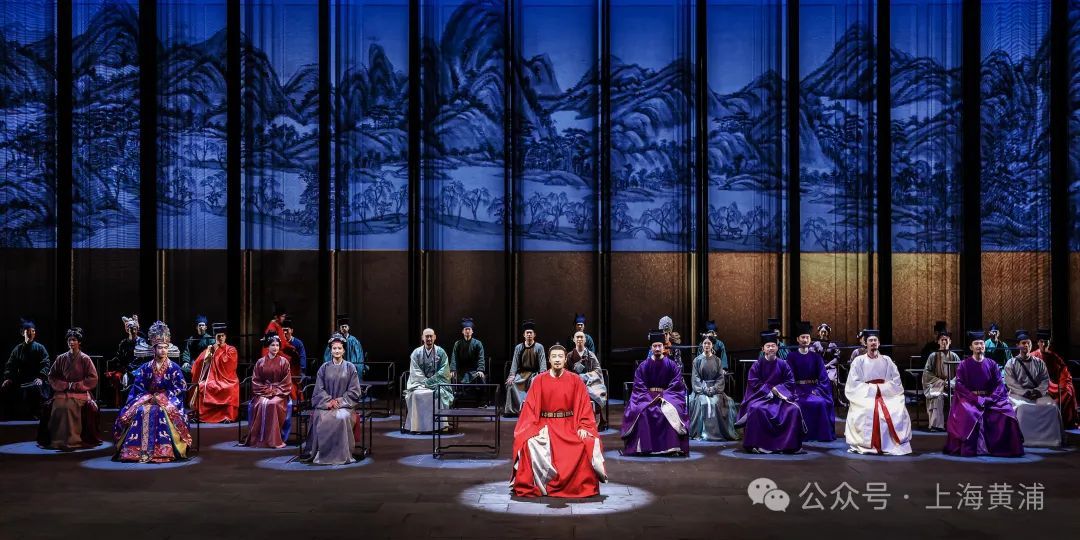 舞台上,依照宋朝规制打造30米青砖铺满的地面,40多把北宋气质的座椅,17组9米高2米宽、可向前推进的多媒体大屏风,构成大而宽的舞台视觉主体元素,流动的宋代市井之景就在其间徐徐展开。歌队也发挥了重要作用,他们是北宋官僚、黎民百姓、家人等,时而站在当代文化立场,发出今人的调侃、戏谑、评判,增加了画面感和喜剧性,巧妙地人景相融,让舞台充满丰富变化。