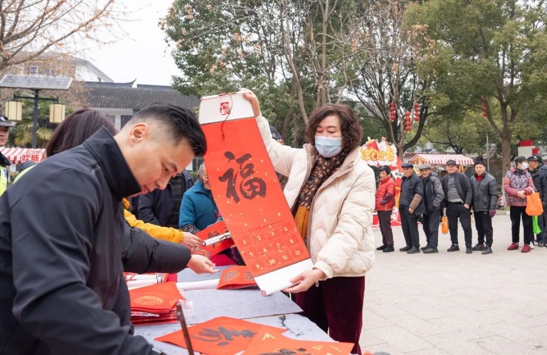 在金泽的居民区里,新春佳节来临之际,丰富多彩的迎春节目和表演送到了居民家门口,在欢乐的氛围中让居民感受到浓浓的年味。沪剧、歌曲、锡剧等精彩节目轮番上演,赢得现场观众热烈掌声。现场还有书法爱好者亲自挥毫送“福”,祝福大家新的一年万事顺意、阖家幸福。
