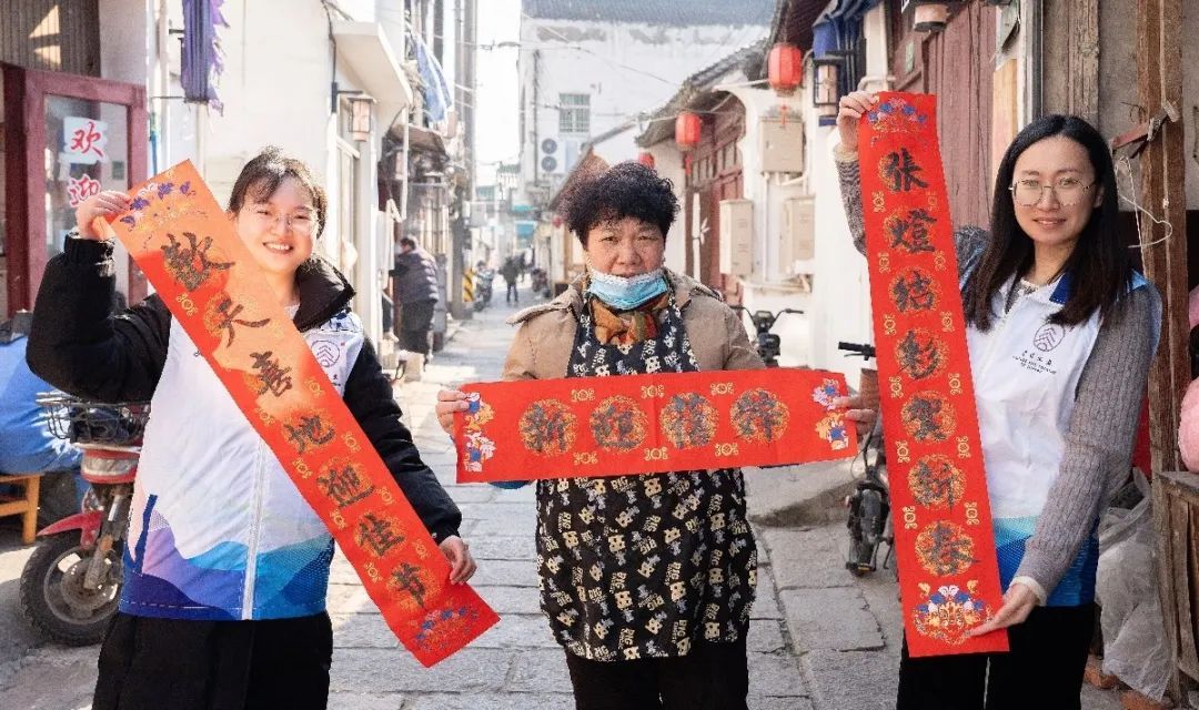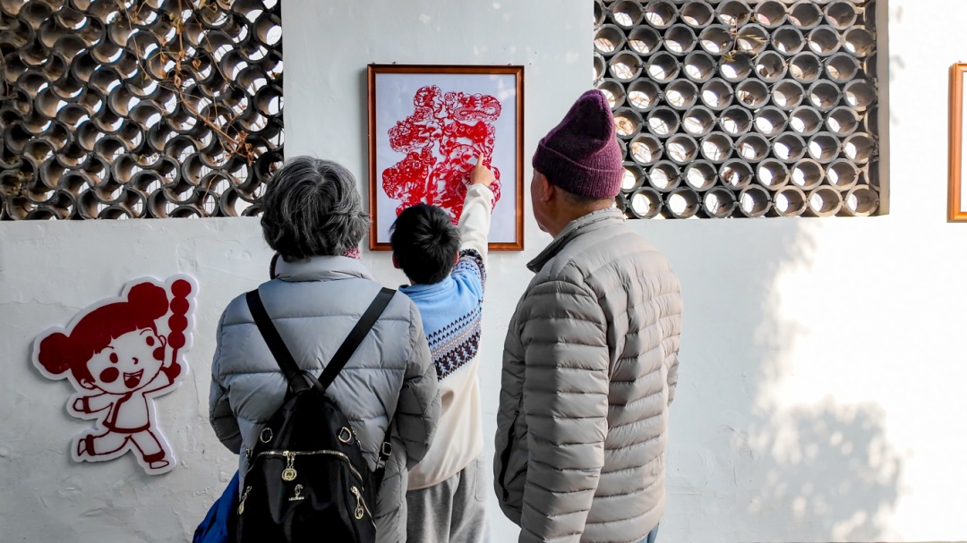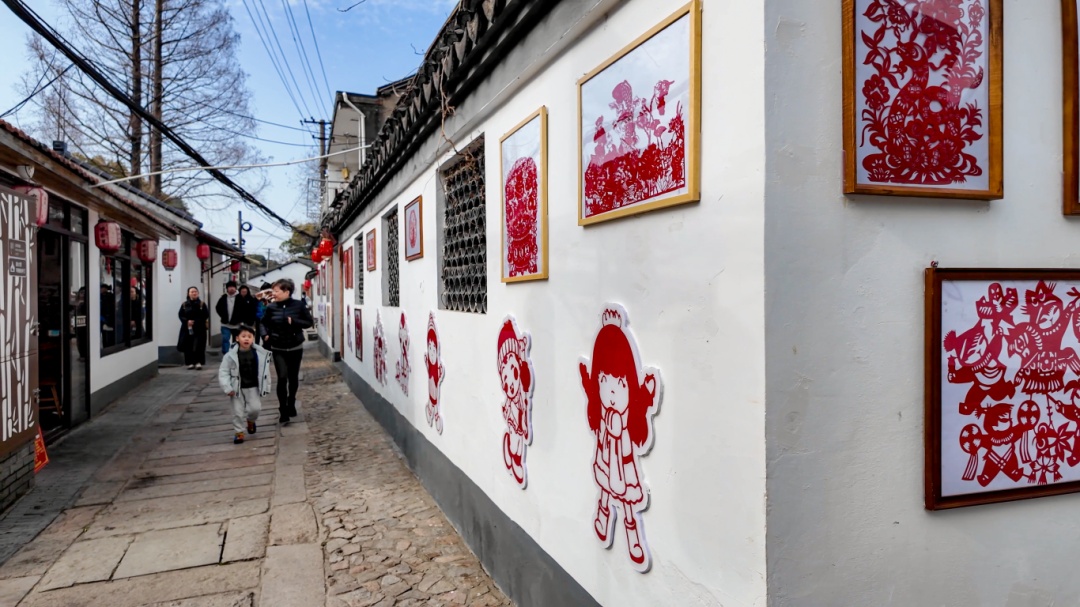 新春佳节近,一幅幅红红火火的剪纸年画,点缀着金泽古镇的街头,氤氲出浓浓年味。游客们有说有笑地走在石板小巷里,穿行在这些大红色的剪纸年画之间,或驻足观赏,或拍照记录,红火的新春记忆就在一停一行间,在心头蔓延开来。一张张剪纸年画,浓浓年味儿,更映照着金泽老百姓的红火生活。