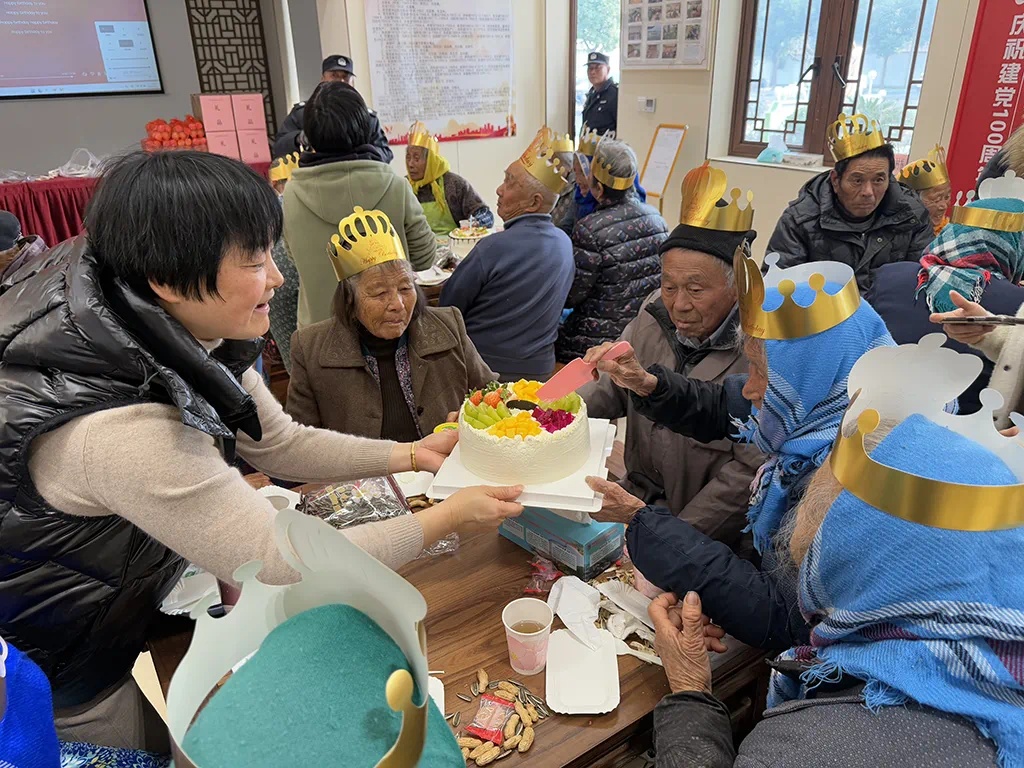 新春将至,金泽的老年朋友们集体过生日迎新春添新岁啦!活动现场,年味浓郁,大朋友、小朋友们一边品尝甜蜜蛋糕,一边分享着彼此的故事和回忆。现场还有书法爱好者挥毫泼墨,书写新春对联和福字,年味在墨香中越来越浓,岁月在欢声笑语中越来越甜蜜。