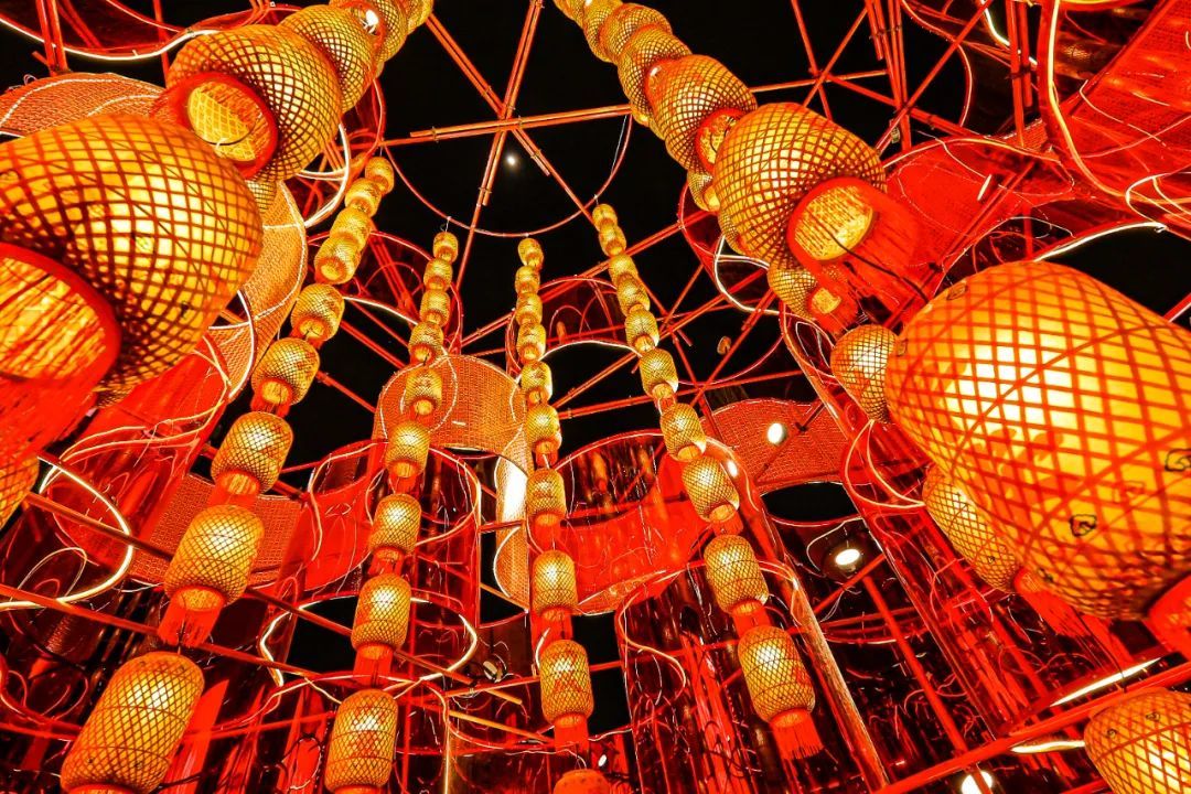 七宝镇宝龙城原创艺术装置“新满意竹”,以象征时间的年轮为灵感,融合竹编这项非遗民俗形式,将传统与新意交叠环绕,营造出浓郁的春节氛围。