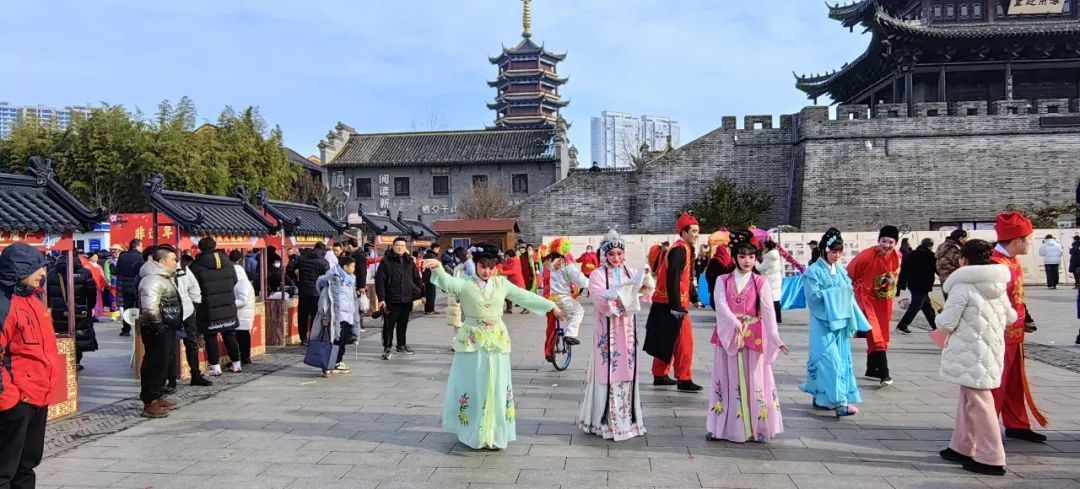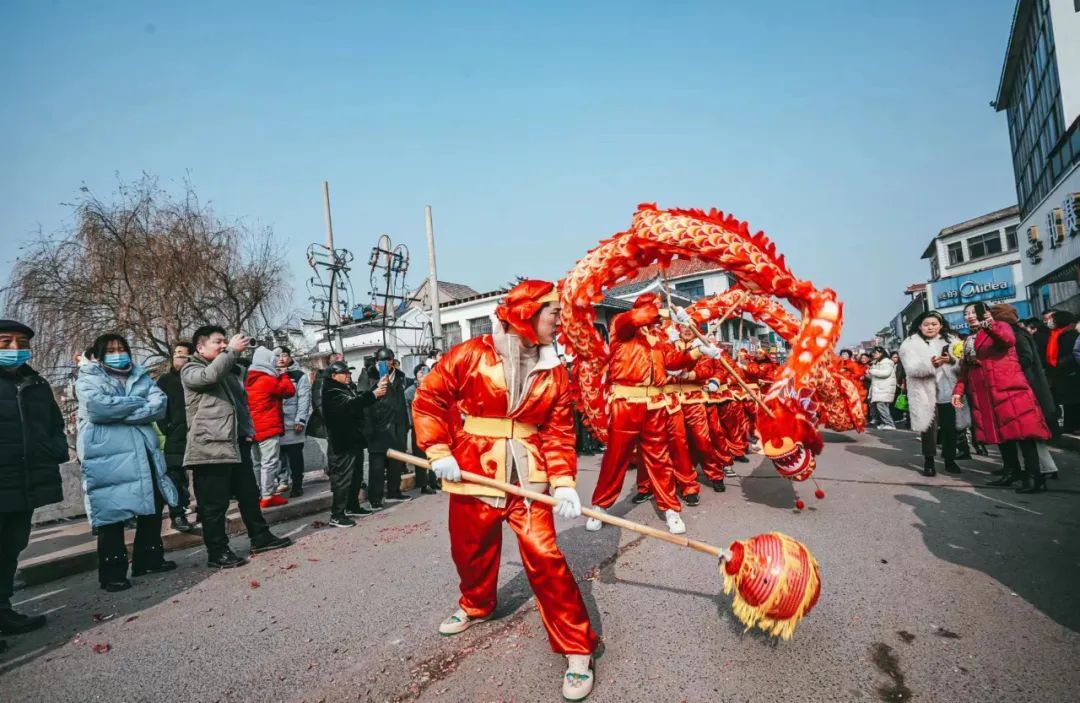 举办传统民俗表演、新春文艺汇演。开展舞龙舞狮、跑旱驴、踩高跷等传统项目演出,穿插挑花担、打连厢、荡湖船等特色表演和淮剧杂技文艺表演,再现传统农耕民俗节庆的热闹场景。组织“新春市集”,提供非遗技艺展示、民谣乐队表演以及敲鼓祈福、财神送福、登塔祈福、新春美食汇等活动,为游客带来多样的新春体验。