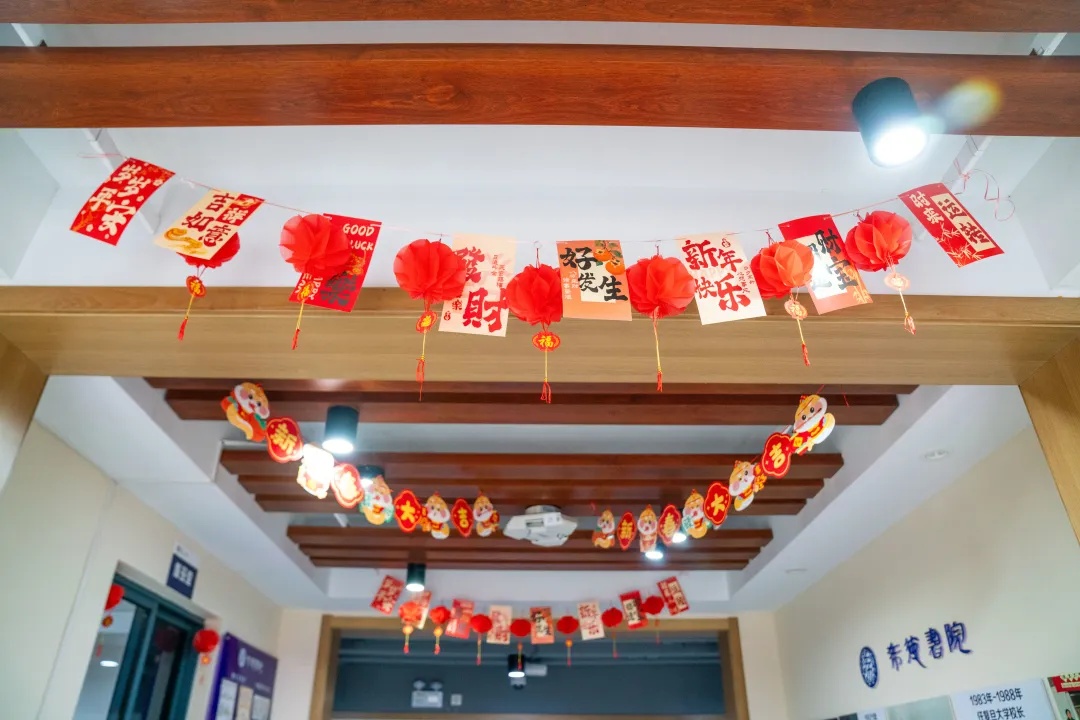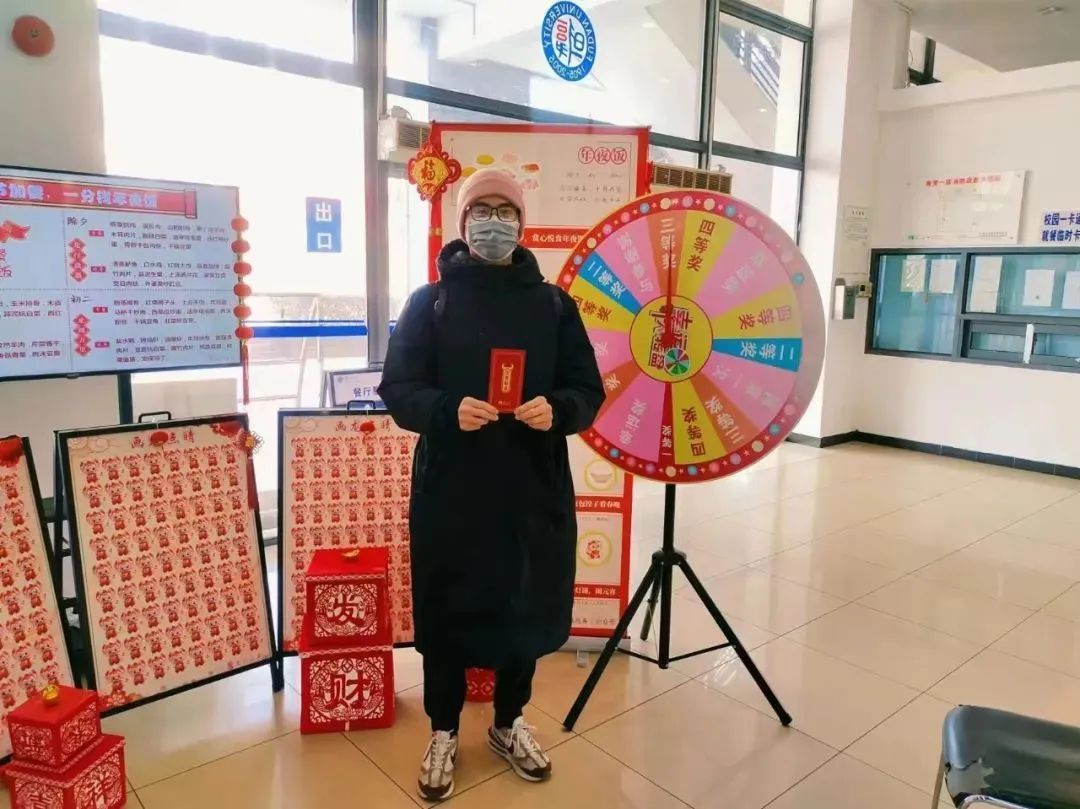 除了装点温馨的年味氛围,南(东)苑生活园区为每一位留校过年的同学准备了心意满满的“福袋”。暖心礼包,浓浓关怀!记得主动找宿管阿姨领取零食大礼包+校名保温杯(双色选一)。
