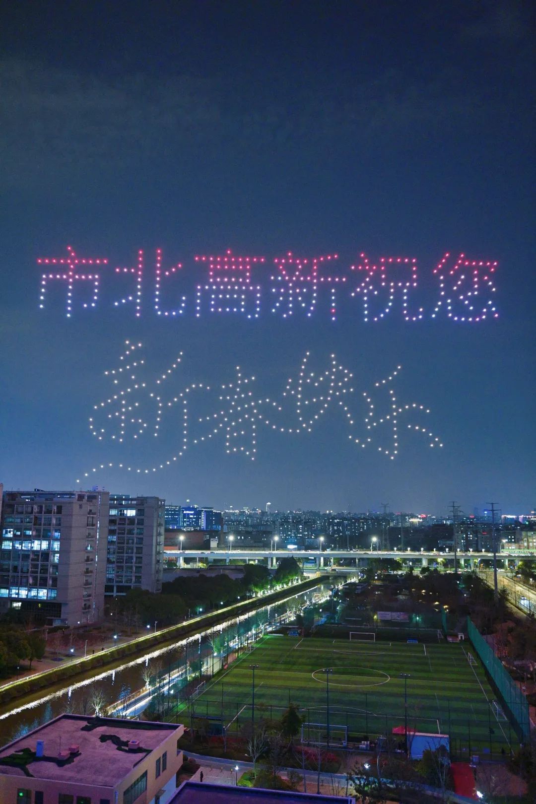 星光映市北,光影秀静安。1月24日晚,静安市北高新园区的静安青年体育公园上空星光熠熠,“美好静安·数通链谷迎新春” 无人机飞行表演惊艳上演,宛如点点星火的500架无人机点缀在夜空,为市民们带来了一场科技与新春氛围融合的视觉盛宴。