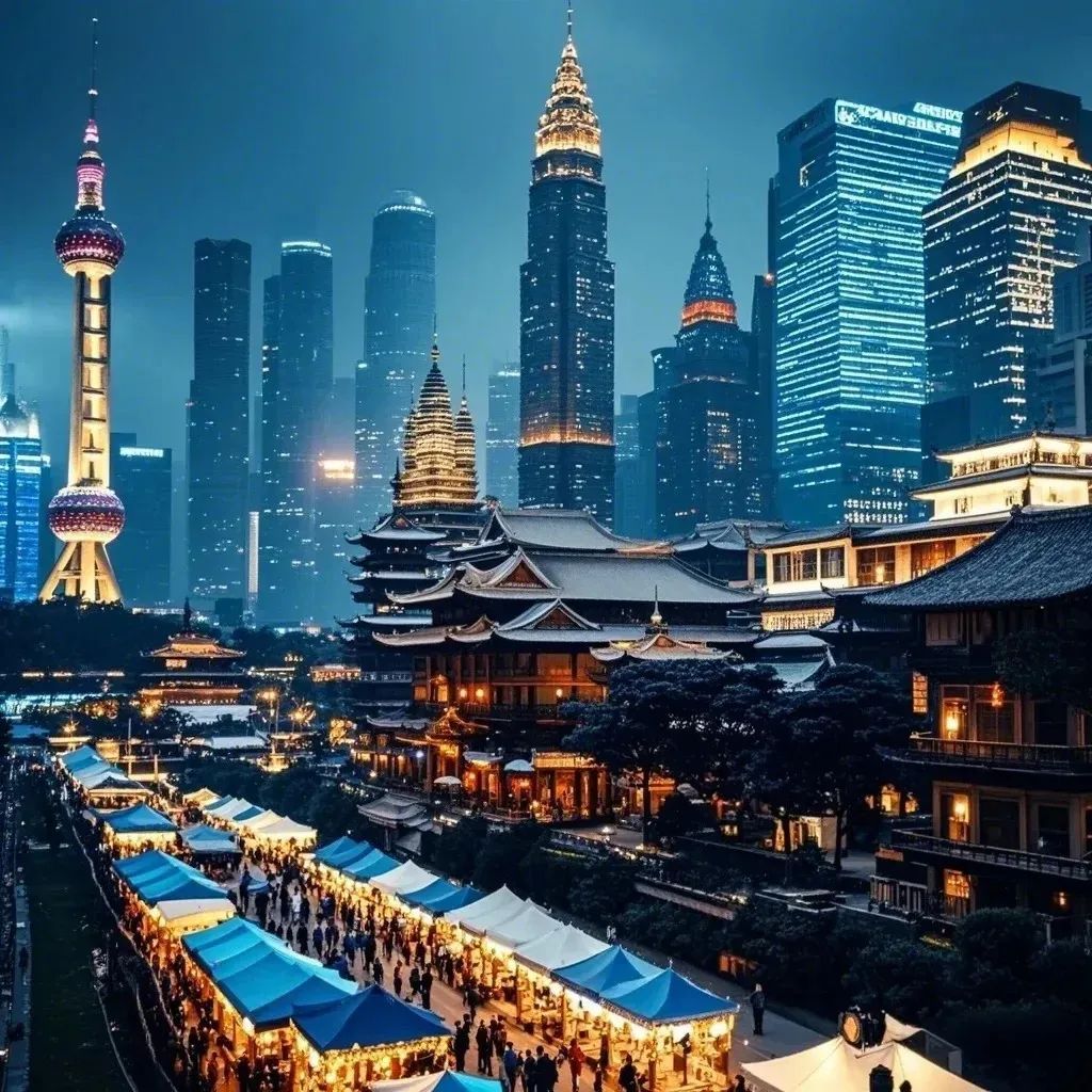 此次比赛主题为“人民城市在静安”,我们将通过精心描绘一幅上海静安夜景图,生动展现人与城市、生活与工作深度交融的场景。画面之中,以静安的标志性建筑为核心主体,它们拔地而起、错落有致,彰显着独特的地理空间,散发着浓厚的历史底蕴与现代气息。而在建筑周围,夜市、集市的灯火如繁星般闪烁,熙熙攘攘的人群在其中穿梭、交流,生动地展现出人们在城市中生活的鲜活状态。这不仅是对城市的深度诠释,更是对人民生活与城市发展的精彩演绎。