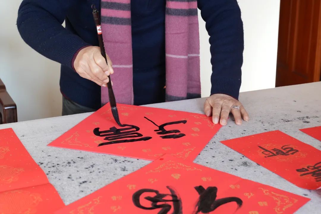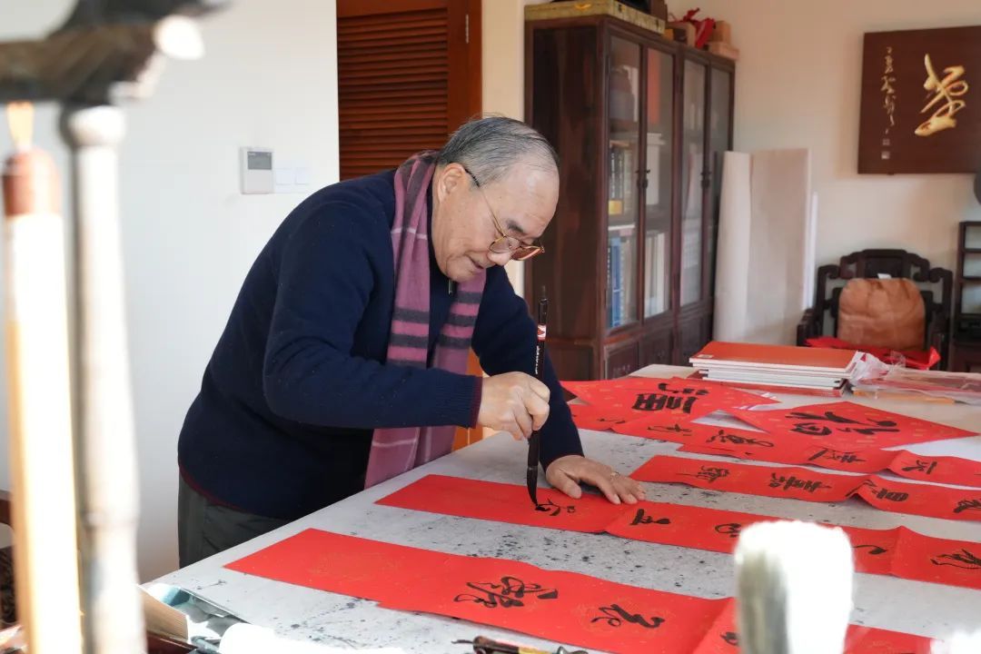 走进孙敏的书房,墨香四溢。书桌上,红纸铺展,孙敏拿起毛笔蘸满墨汁,凝神静气,一笔一划娴熟而有力地书写着。他的书法造诣深厚,草书灵动飘逸、隶书工整静穆。