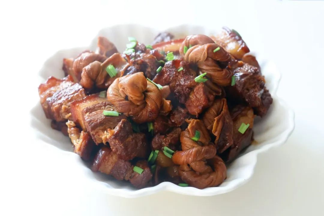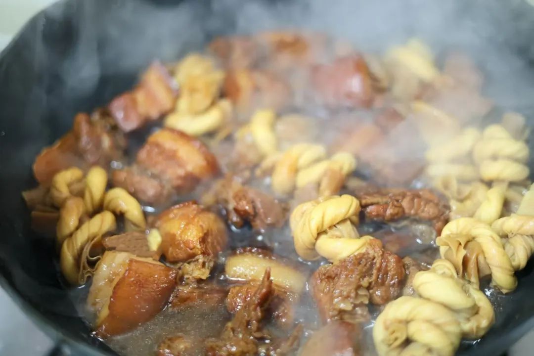 4.加入百叶结,小火20分钟再转10分钟中大火收汁。