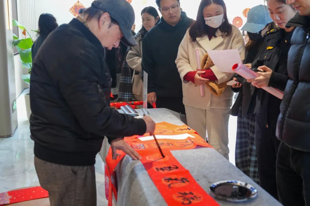 在公寓物业负责人的引导下,大家首先前往公寓实地参观。大堂的布置温馨精致,年味满满,二楼配置了健身房、会议室等公共设施,欢迎住客使用。北楼和南楼分别位于大堂两侧,入住了博世、携程、百秋、联合利华等园区企业的职工,其中百秋的主播员工入住的楼层,更是成为了别有特色的“明星主播楼层”。当天,临客公寓·荟临居楼宇自治委员会正式与大家见面。楼委会由临空园区党委牵头成立,成员包括园区派出所、市场所、营商、党群、租赁、物业、新泾镇职能部门的楼宇负责人及租户代表,致力于做好服务企业人才的“店小二”,提供党群服务、人才服务、物业管理和企业发展的“一站式”服务。活动现场,还有两位来自徐悲鸿艺术中心的书法家受邀为大家挥毫写下新年祝福,送上新春对联、“福”字及非遗窗花。“一年四季春常在,万紫千红永开花”“家家顺意永安康,事事如心大吉利”——一副副春联包含着美好寓意,也包含了大家对新年美好生活的期盼。经过参观和交流,有附近企业职工当场向楼委会成员询问入住事宜,并获得了物业公司项目经理孙洁的热情回复,“有什么需求都可以找我”。孙洁向记者介绍道,临客公寓配备了全方位的人脸识别门禁、保安24小时巡逻、室内一键报警、红外监控(三楼以下的阳台)等设施和服务,临空园区治安派出所也即将搬入。此外,公共区域的布置很温馨,“想让大家有一种回家的感觉”,这次新春活动也是一种尝试。金薇作为楼委会的一员,既是园区的党群工作者,也是公寓的租户。她表示公寓的物业服务很好,基本上有需求就会响应,在请人上门维修的时候,公寓的保安也会在门口守候,防止意外情况发生。据悉,临客公寓·荟临居位于协和路1599号,由长宁区属国有企业上海东虹桥投资发展(集团)有限公司打造,致力为园区企业人才打造高品质人才公寓。项目总计提供375套住房和165个停车位,均为一室户型,月租金为4000-4300元。部分图片由临空园区提供