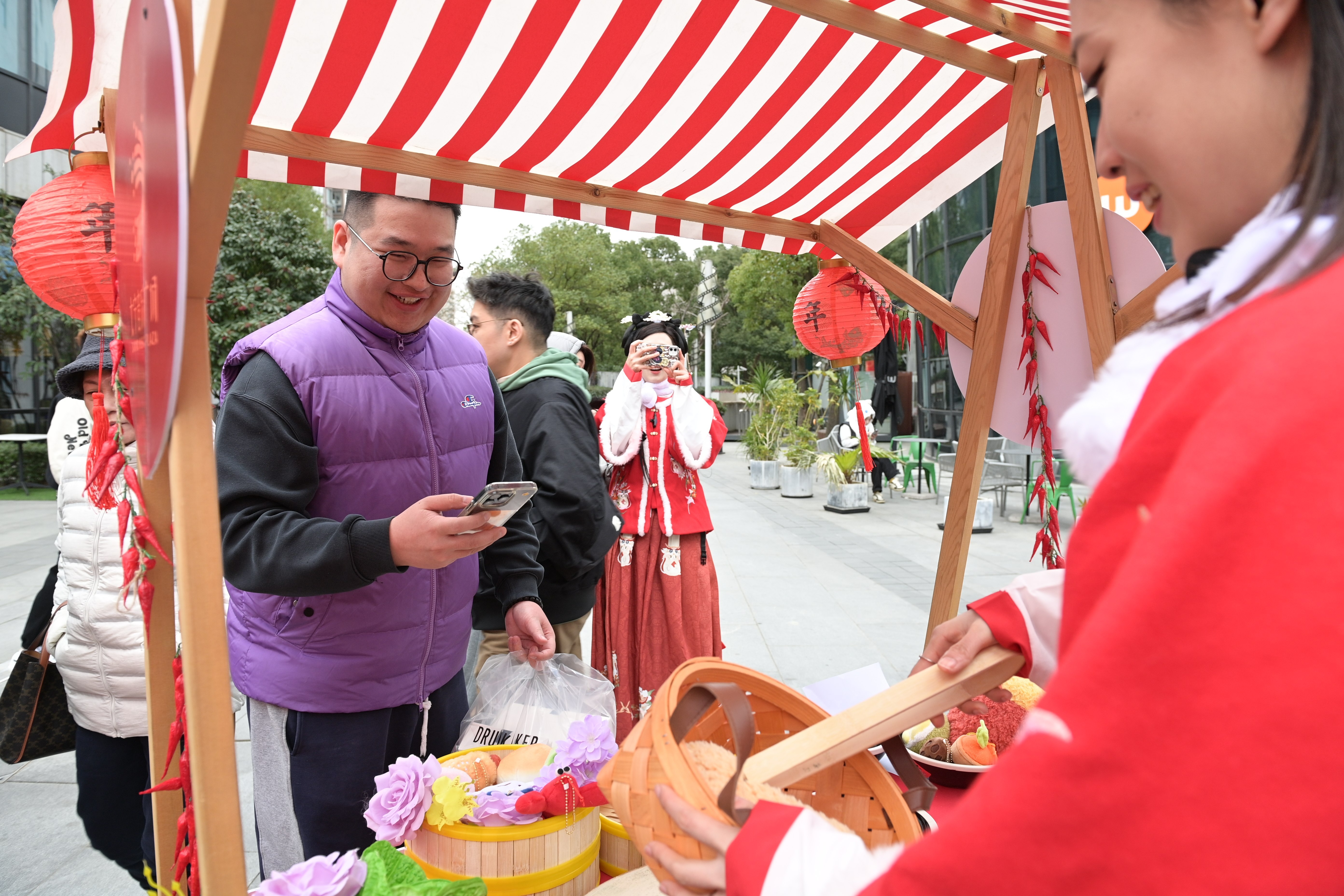 “近几年,我们发现市民朋友在购物时,不仅关注产品本身和其功能性,更渴望获得独特的体验和情感共鸣。所以,我们也是推出了迎合热点的‘过家家式’互动方式,满足大家‘成年人也想过家家’的心情。”大宁音乐广场方面表示,新春之际,现场每一款“菜品”都被赋予了特别的含义,“比如说生菜寓意着‘生财’,花生寓意着‘好事发生’……我们也希望这小小的毛绒玩具,可以为大家带来好心情。”