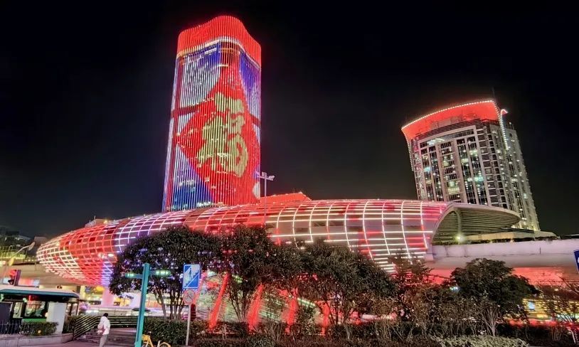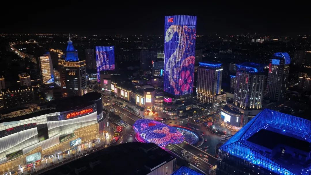 蛇年新春之际,杨浦区绿化市容局以“恭贺新禧 蛇年大吉”为主题在五角场商圈的合生汇、凯悦酒店、彩蛋及江湾体育场等建(构)筑物,开展联动光影秀。夜幕降临,华灯初上,神龙摆尾辞旧,金蛇起舞迎新,灯光交织变幻,传递浓浓的新春祝福。