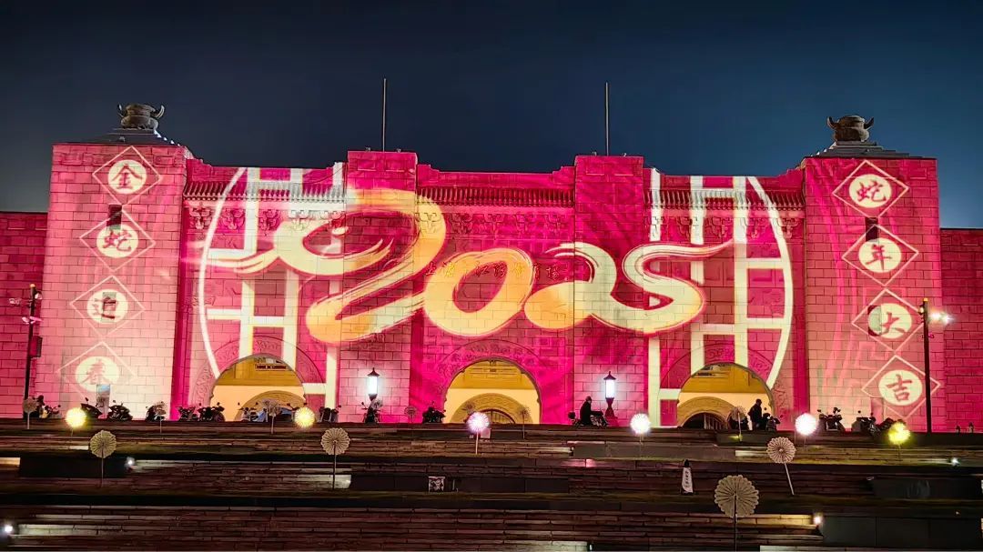 巳巳如意,生生不息,财福齐至,喜乐绵长,光影笔走龙蛇,挥洒出对新年的深情祝福。在这一片红火璀璨中,年味浓浓,暖意融融,“时和岁丰,繁荣昌盛”的美好祝愿化作生动的视觉盛宴,尽显中国传统文化的底蕴与风采。