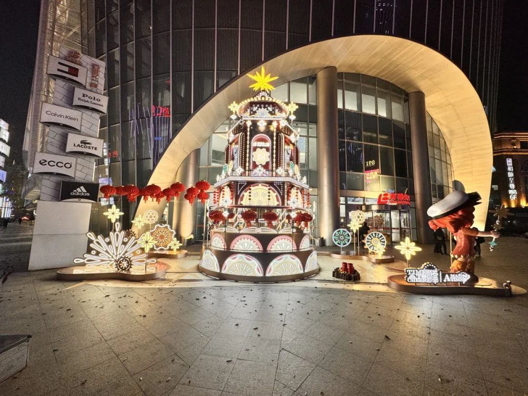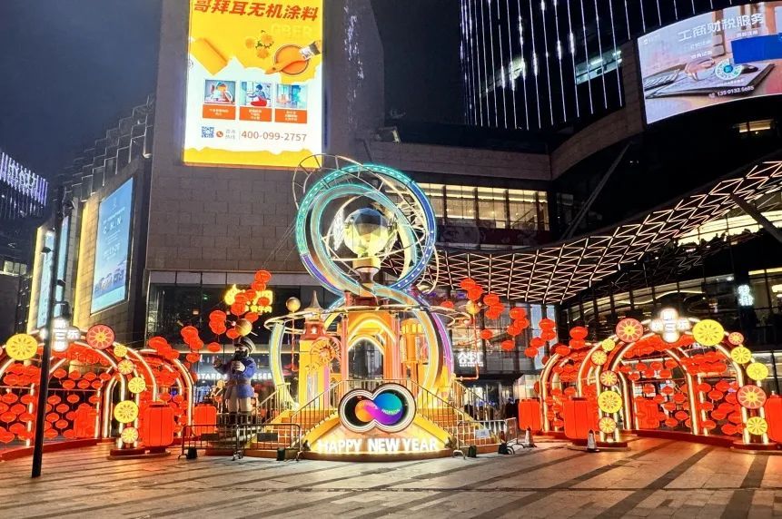 合生汇、百联、紫荆广场等各大商场门口,充满创意与年味的新春灯组,增添了浓厚的节日气氛。