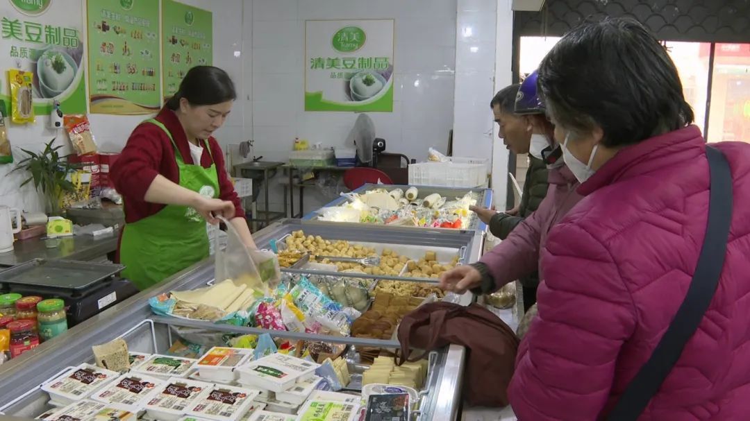 步入徐泾菜市场,市民们穿梭于各个摊位之间,挑选着各种蔬菜、肉类以及水产品。尤其是一些象征着“年年有余”的鱼类,更是受到了大家的青睐,水产摊位前人头攒动,市民们纷纷选购自己心仪的年货。此次春节,销售牛肉制品的商户姚传霞也主动留了下来,“过年我们不回家,正常营业,平时都是老主顾来照顾我们生意,我们也希望春节给大家提供方便。”