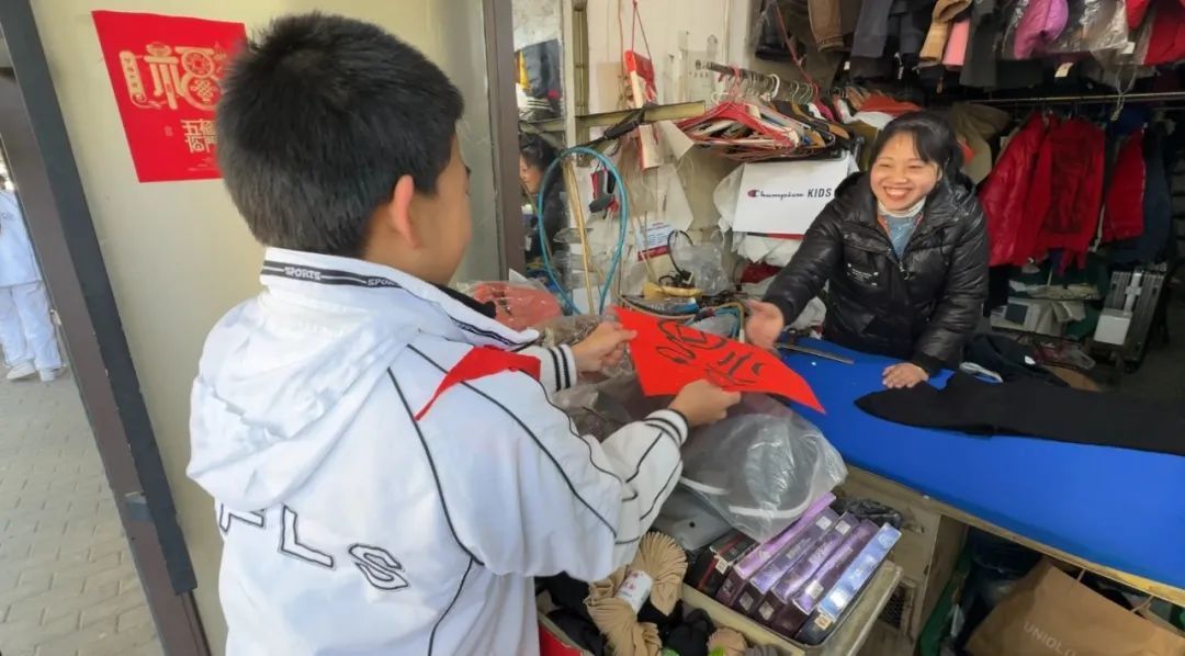 在一家米线店,“00后”的老板娘侯悦姐妹俩收到了“福”字后,开心地说:“收到这些‘福’字,感觉新年的氛围一下子就浓起来了。谢谢这些可爱的孩子,也谢谢街道组织的这次活动,让我们这些在外打拼的人感受到了家的温暖。”