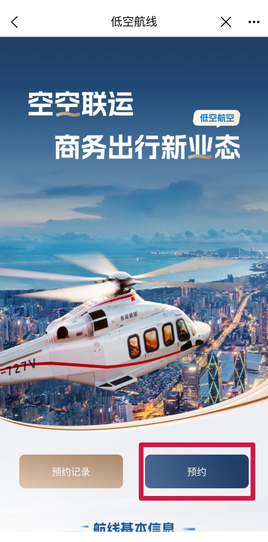 在首页面中选择“预约新航班”