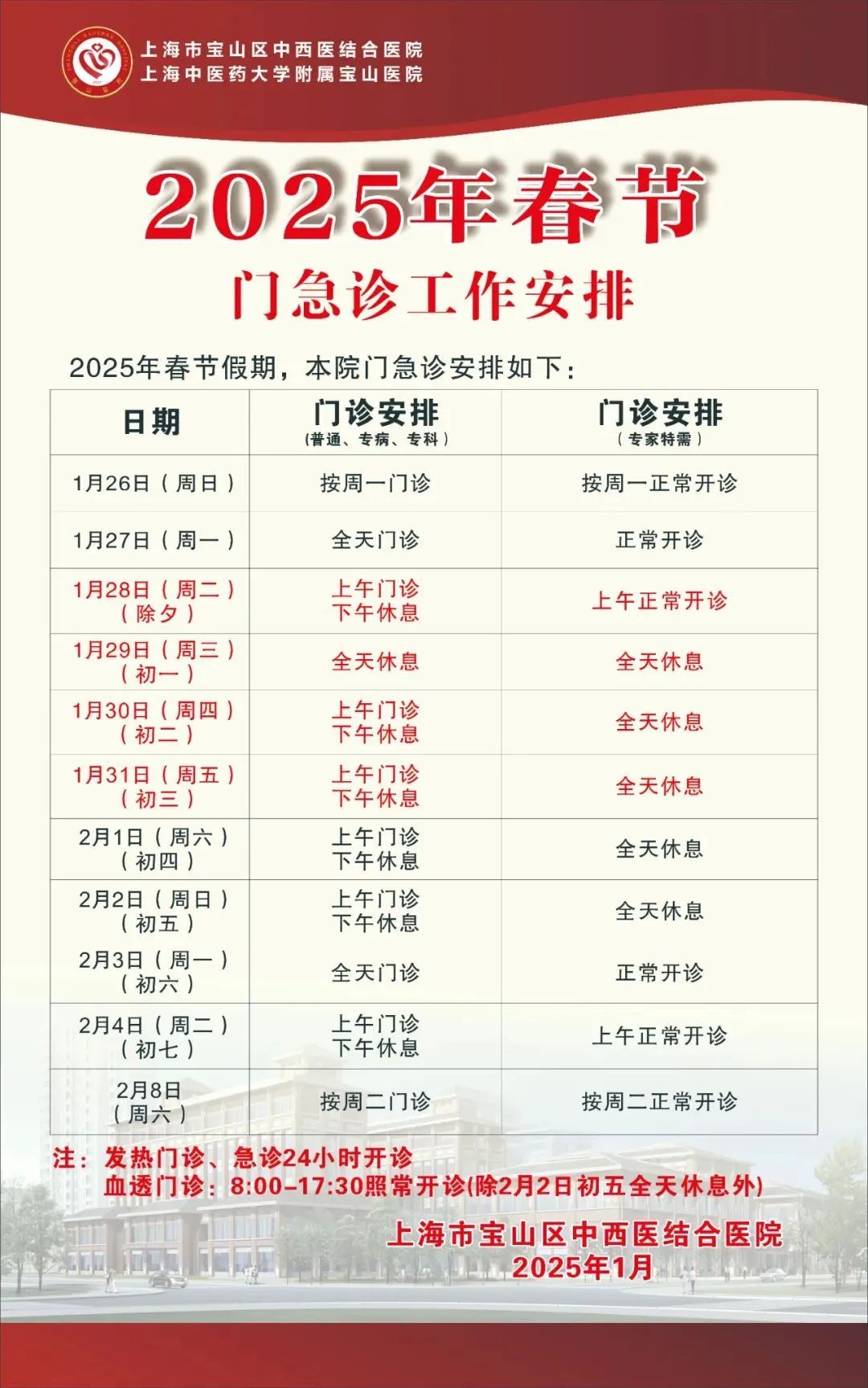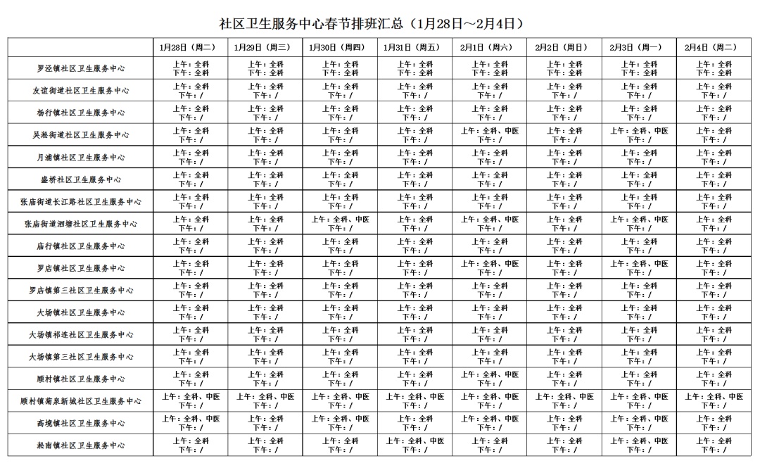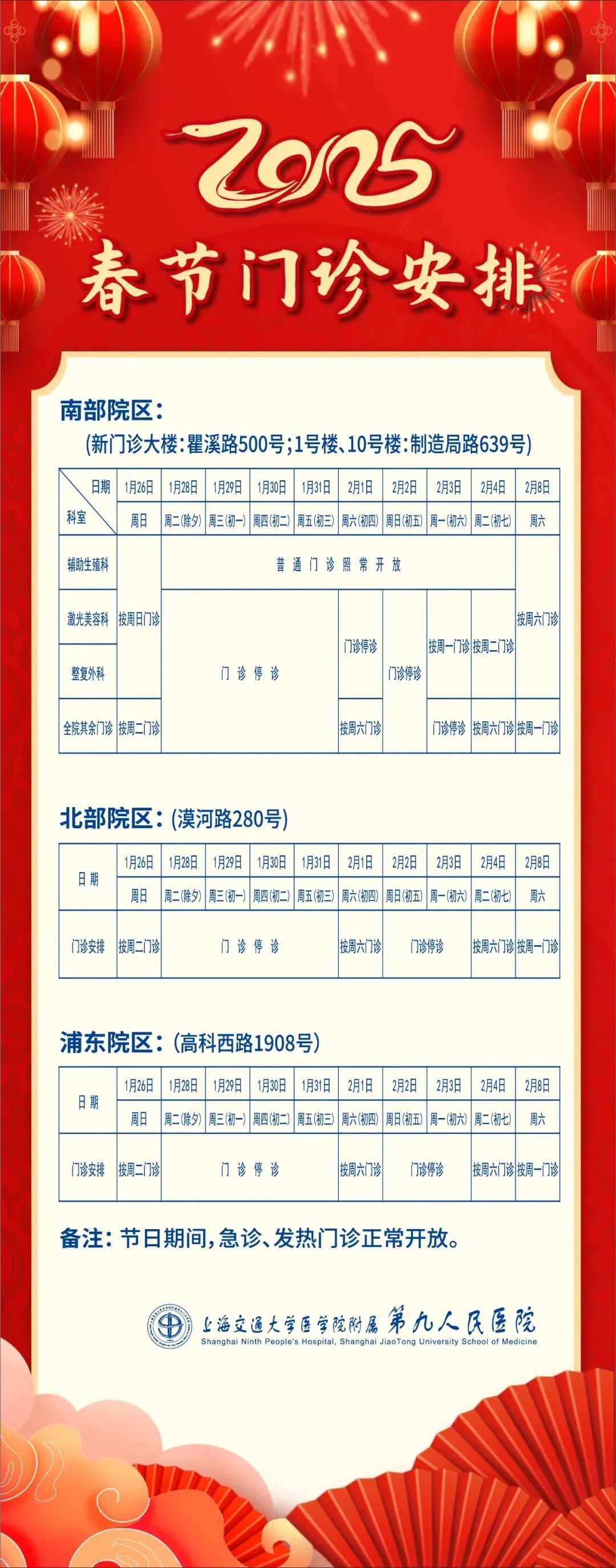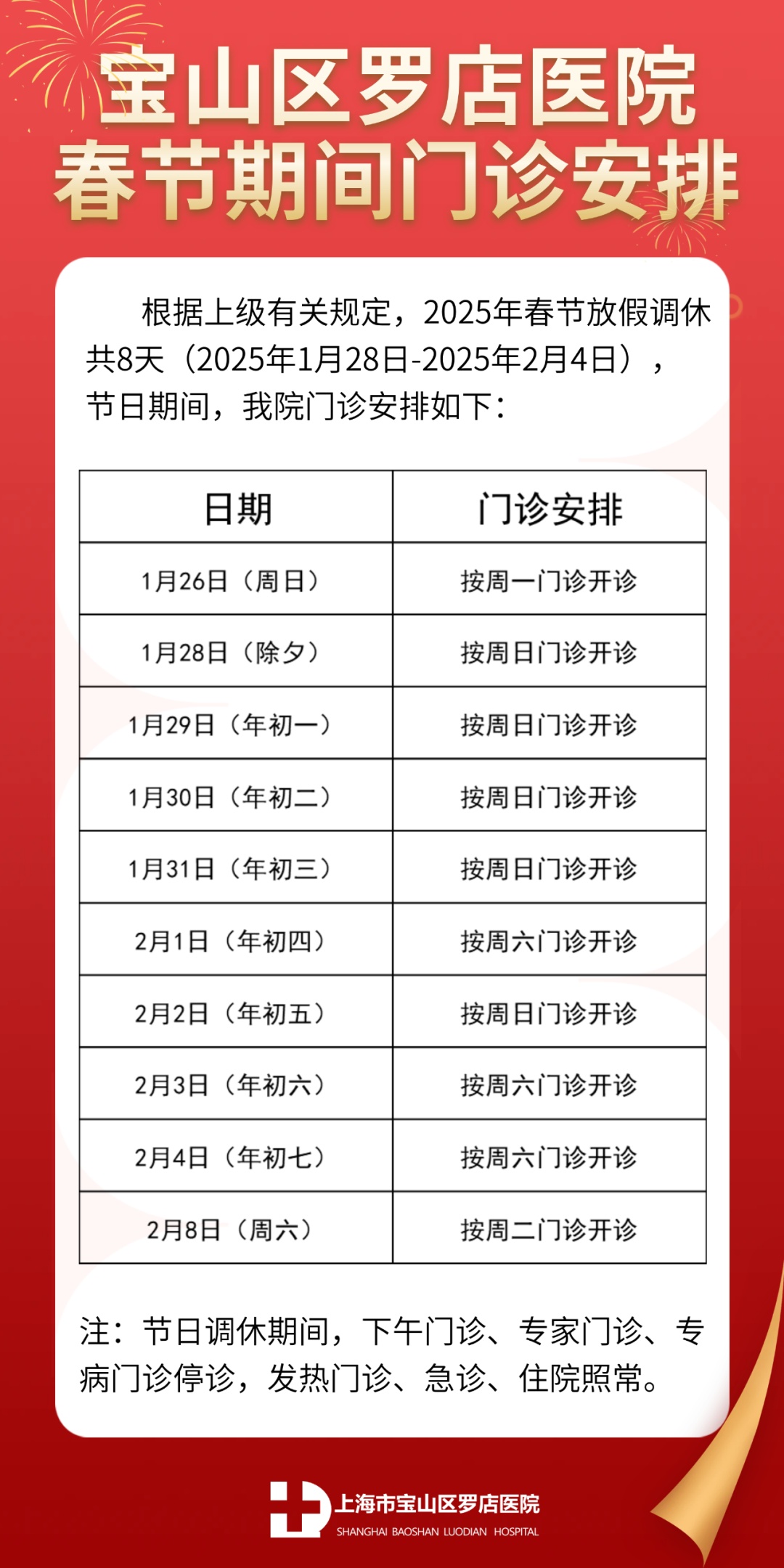 春节长假期间的门、急诊时间安排