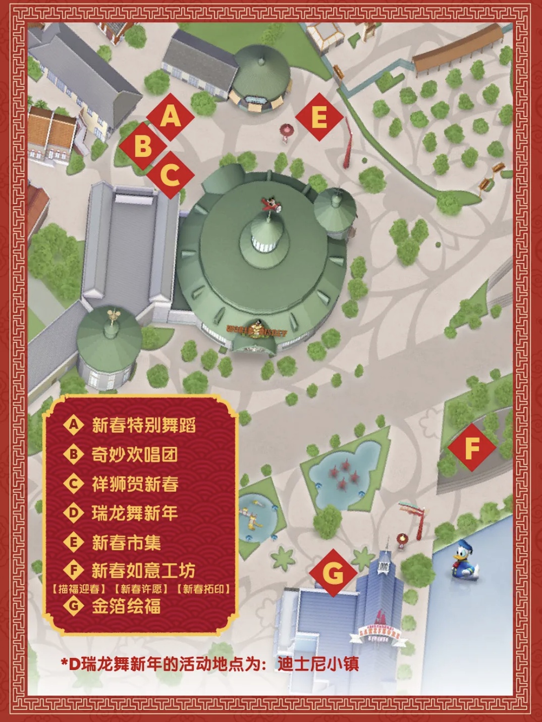 米奇和朋友们也换上了新装,游客可以到许愿花园写下心愿,也可以在新春庆典烟花秀中观赏漫天绚烂。