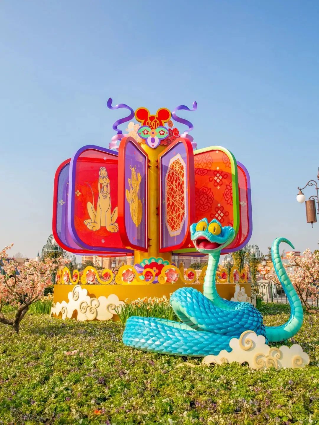 沿街随处可见的迪士尼朋友们新春装饰,萌出节日新高度。