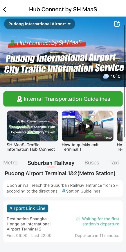 外籍旅客可通过“随申行”APP英文版查询上海轨交、公交和轮渡的实时交通信息,如公交线路、站点、首末班车时间,还能实时获取车辆即将到站信息、等候时长等。抵达上海机场及火车站后,想要快速搭乘各类交通工具的国际旅客可以进入“枢纽通-上海交通信息服务专区”查看。