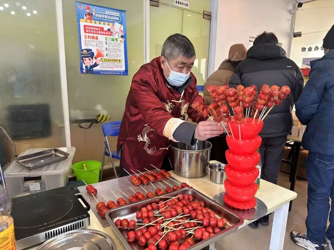 屈家桥居民区同样热闹非凡,捏面人、糖画、爆米花、糖葫芦摊位一字排开,空气中弥漫着甜蜜与欢乐的气息。居民们围在一起,书写“福”字与春联,一笔一划间,都是对新年的美好期许。