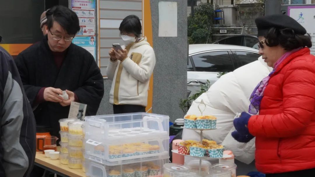 此外,还有品新春好茶的区域,各种优质茶叶琳琅满目,让居民们能够品尝到新春的“第一缕茶香”。水果优选区则展示了各种时令水果,色彩斑斓,口感鲜美,为节日增添了更多的甜蜜与喜悦。居民“达人”小毛老师的点心烘焙品鉴区更是吸引了不少居民的关注。小毛老师展示了他精心制作的各式点心。在品尝美味点心的同时,居民们还可以向小毛老师请教烘焙技巧,共同分享烘焙的乐趣。“这里的年货种类丰富,价格也很实惠。”居民刘先生说,“我买了不少新鲜的蔬菜和水果,准备过个丰盛的春节。”