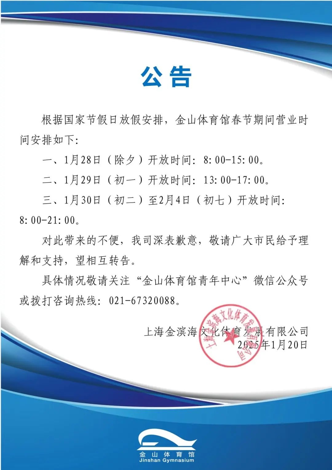 金山体育馆营业时间