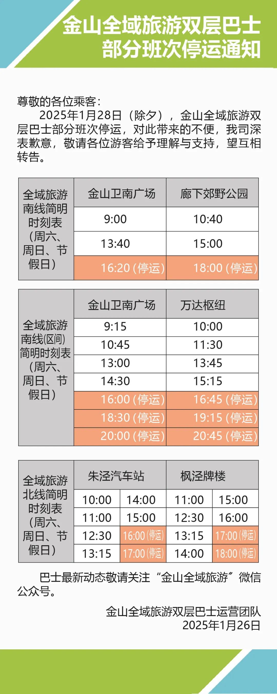 部分班次停运通知及时间