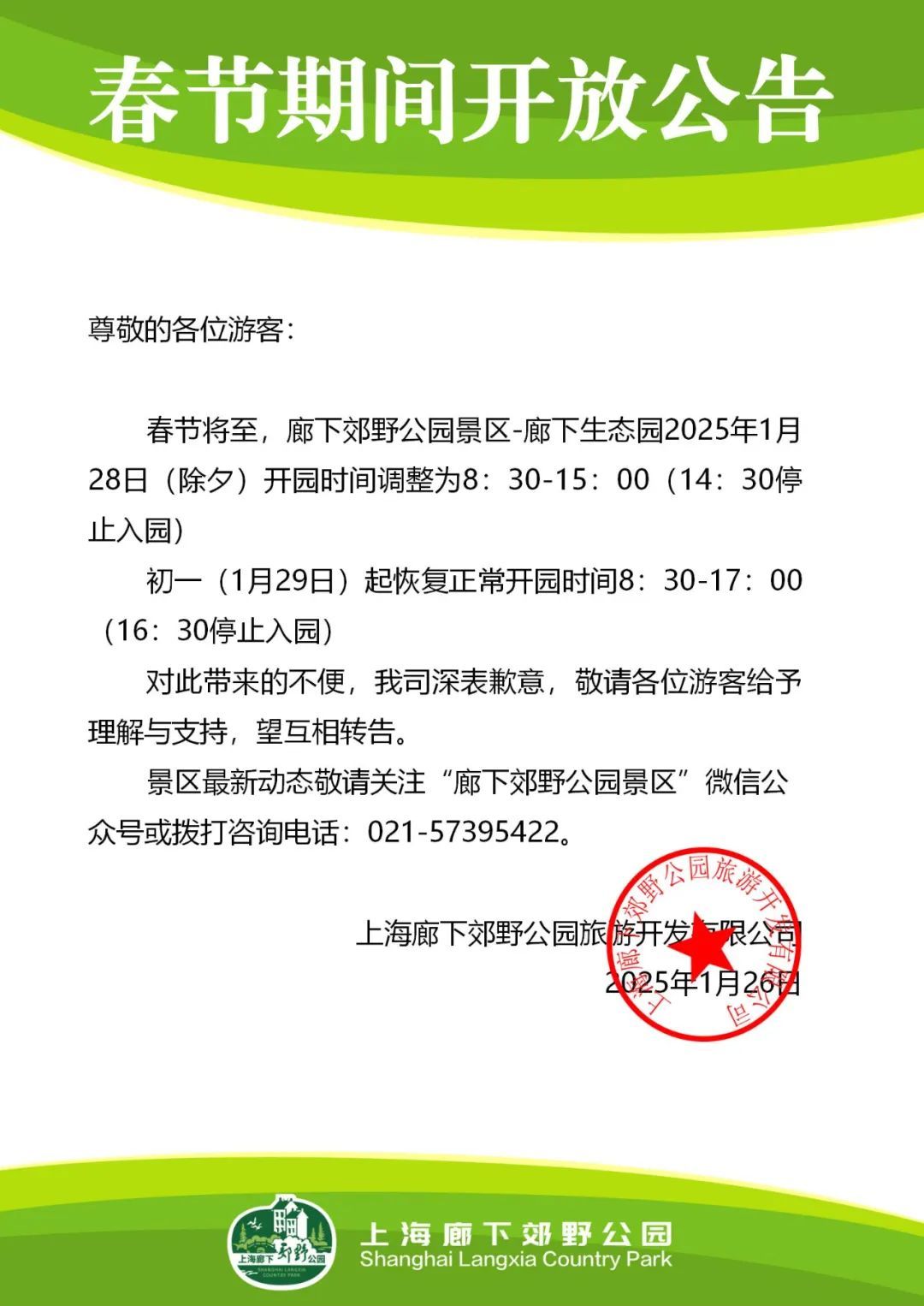 廊下郊野公园景区开园时间