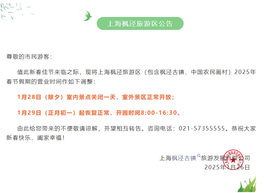 上海枫泾旅游区营业时间