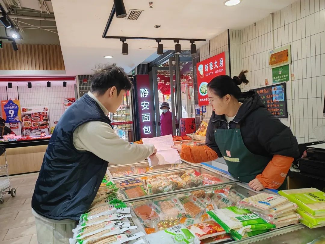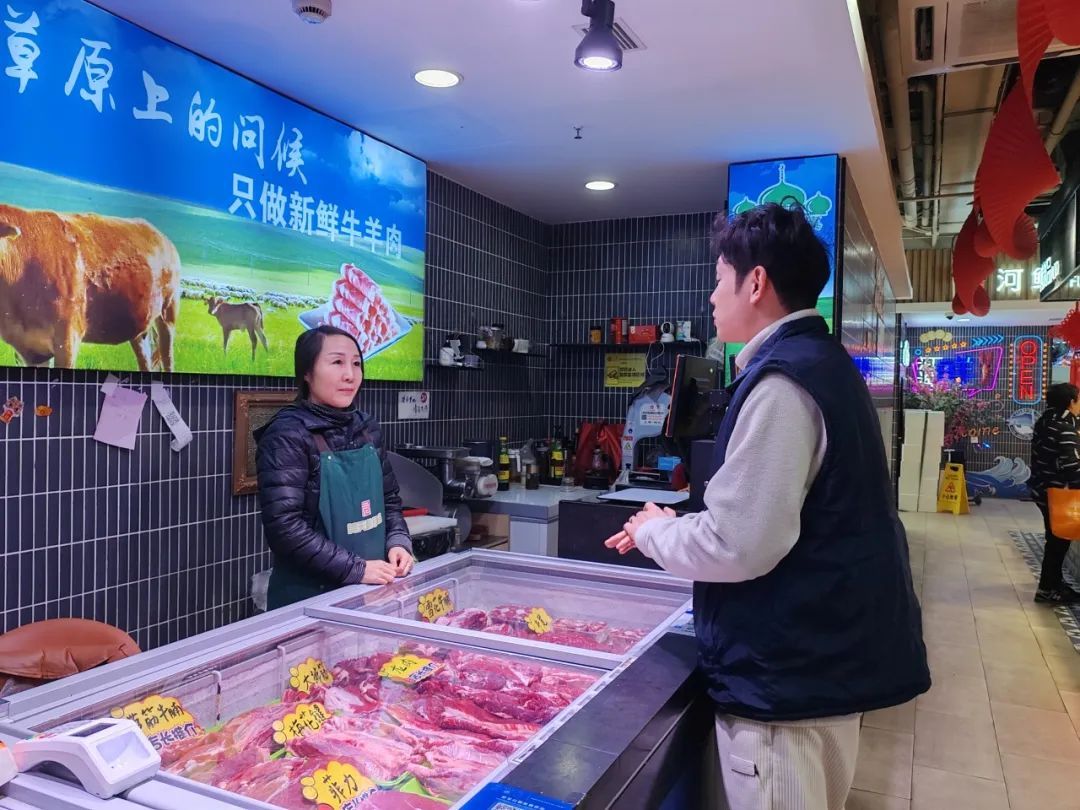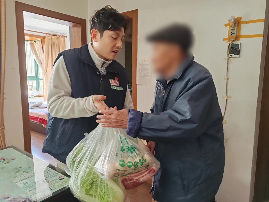 过年期间的新渔菜市场,和往日一样繁忙。一大早,菜市场里已经有一个熟悉的身影在来回穿梭,检查环境卫生、消防安全设施,确保市场有序运营,他就是美天新渔菜市场的经理焦卿。轻车熟路地完成检查工作后,上报当日菜价,焦卿又回到市场上,挨家挨户查看商铺当日的食品检验单。但与往常不一样的是,每走进一家摊位,他总会亲切地说上一句:“新年好呀,给你拜年啦!今天晚上的年夜饭准备好了吗?”为了保障市民春节期间的“菜篮子”,美天副食品有限公司下属18家菜市场坚持“春节不打烊”,因此,这也是焦卿春节在岗的第八个年头。节假日加班,对焦卿而言也早已是家常便饭,并未觉得有任何特别。“我们从事的是民生行业,宗旨就是保供稳价,守护市民的‘菜篮子’,服务好老百姓。”焦卿说,“并不是只有我一个人,我们团队很多人节假日都在加班。”“虽然累一点,但每当节假日看到市民在市场里大包小包、喜气洋洋地采购,都会觉得自己在做一件很有意义的事情。”焦卿说,这种获得感足以抵消一切辛苦。日常生活中,他也会将这种价值观传递给同事。除了日常工作,为社区居民,特别是孤寡老人和困难家庭送上“爱心菜”慰问,是美天副食品有限公司下属各菜市场携手属地居委开展党建联建活动的“传统”,也是焦卿在春节值班期间的重要任务之一。“我们和市场周边的2个社区说好了,居民区书记会把小区高龄独居老人的名单给到我们,我们就把新鲜的爱心蔬菜送上门,让老人开开心心地过个好年。”焦卿说道。说完,他便拎着早已准备好的大包小包出门了。在天山新城居民区书记的陪同下,把一兜兜新鲜的蔬菜、猪肉、鸡蛋送到了老人手中。“这里有白菜、土豆、萝卜、鸡蛋和猪肉,您先吃,不够了告诉书记,我再给您送。”事实上,在美天副食品有限公司,有众多和焦卿一样的工作者,他们在节日期间依然忙碌在民生一线,只为守护承载着千家万户民生大计的“菜篮子”。只有确保“菜篮子”“粮袋子”“肉盘子”的稳定供应,才能写好民生冷暖的“大文章”。撰稿/摄影:朱文轩