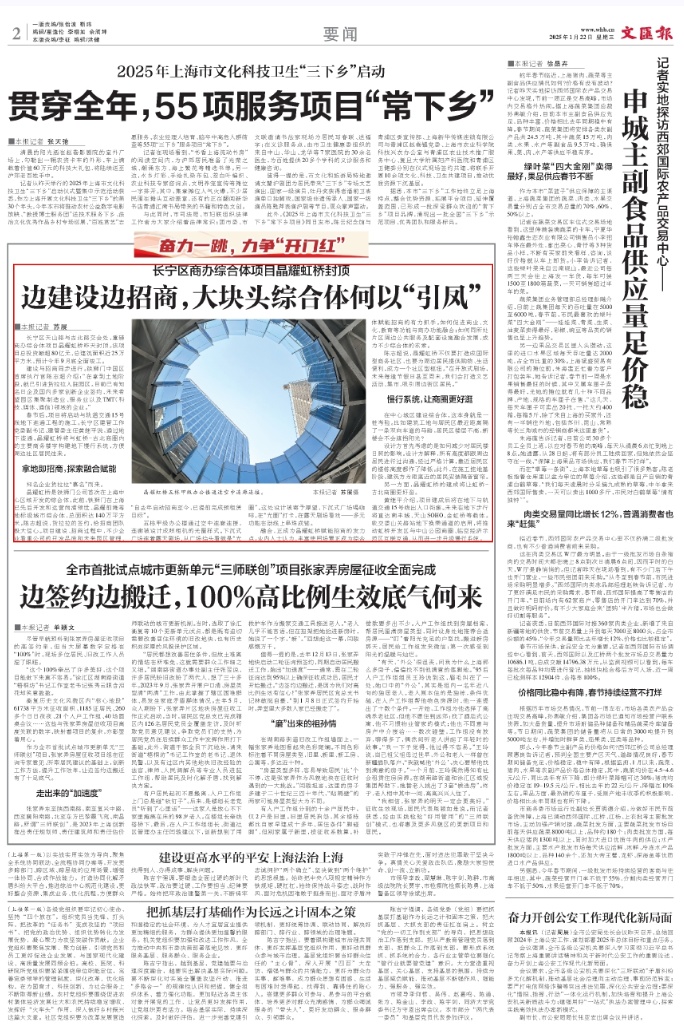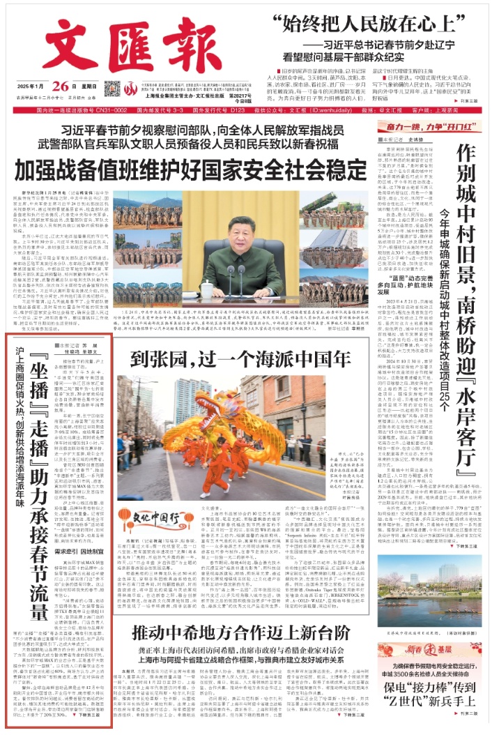 1月24日、25日、26日,《文汇报》头版、上观新闻、《新民晚报》、新闻综合频道“新闻报道”“新闻夜线”“上海早晨”栏目,东方卫视“看东方”栏目、上海人民广播电台“990早新闻”栏目报道:长宁区临空商圈的“上海荟聚”迎来客流小高潮,相较往日同期提升6%至10%。商场筹备百余场文化演出,与附近酒店联动等优惠举措,吸引全市以及长三角区域的消费者。基于区位特色,长宁各商圈的商场都在进一步探索如何与周边酒店等载体联动。春节期间,西郊百联与隔壁的上海动物园联动推出快闪店,消费者还能“偶遇”上海动物园饲养员带来的动物知识科普讲座。商圈、商场都在因地制宜地创新供给,为消费者提供更多元、丰沛的体验。