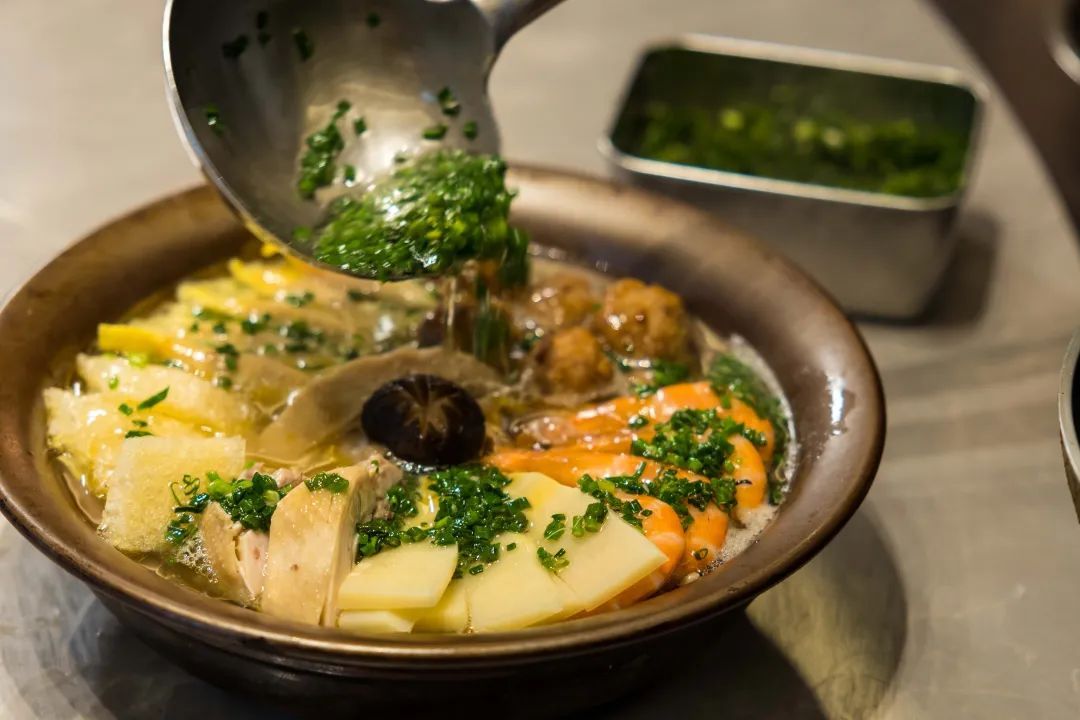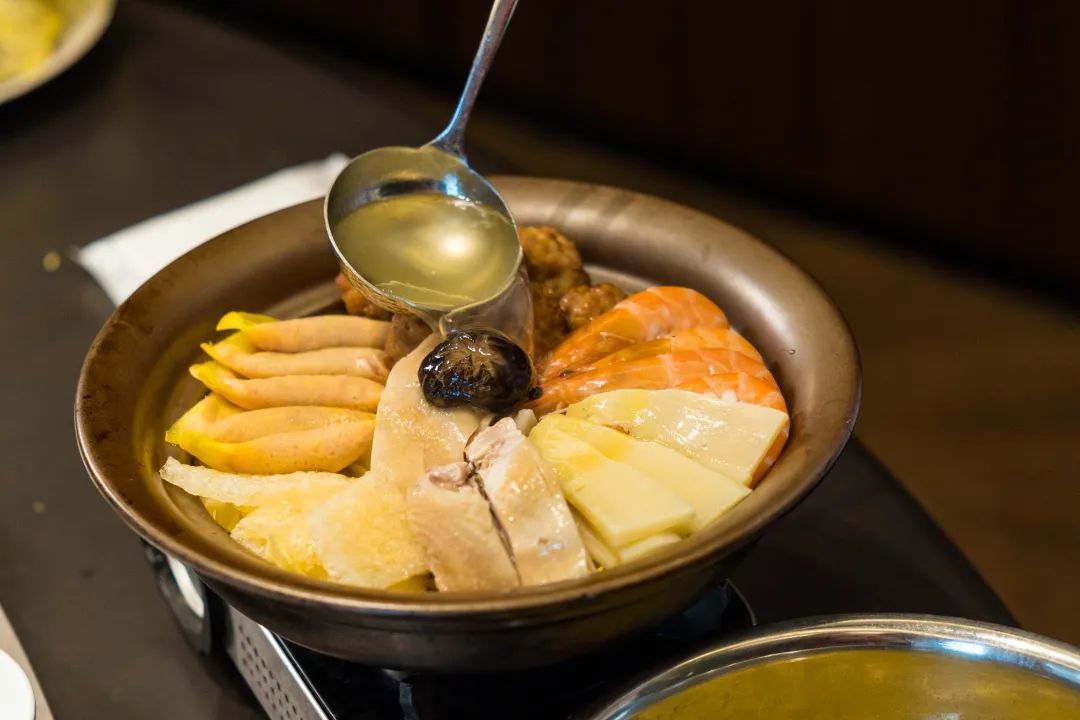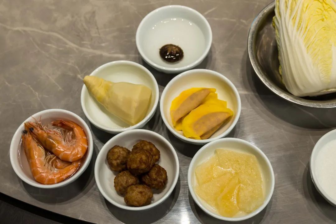 主食材:娃娃菜 炸猪皮 手工蛋饺 手工炸肉丸 冬笋 基围虾 咸鸡 香菇