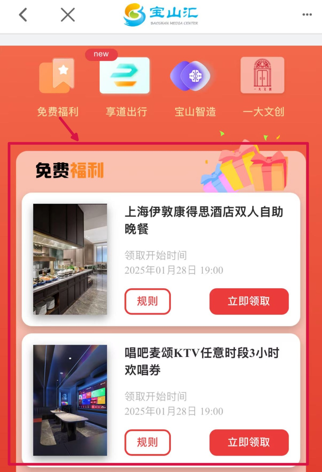 进入“免费福利”区域