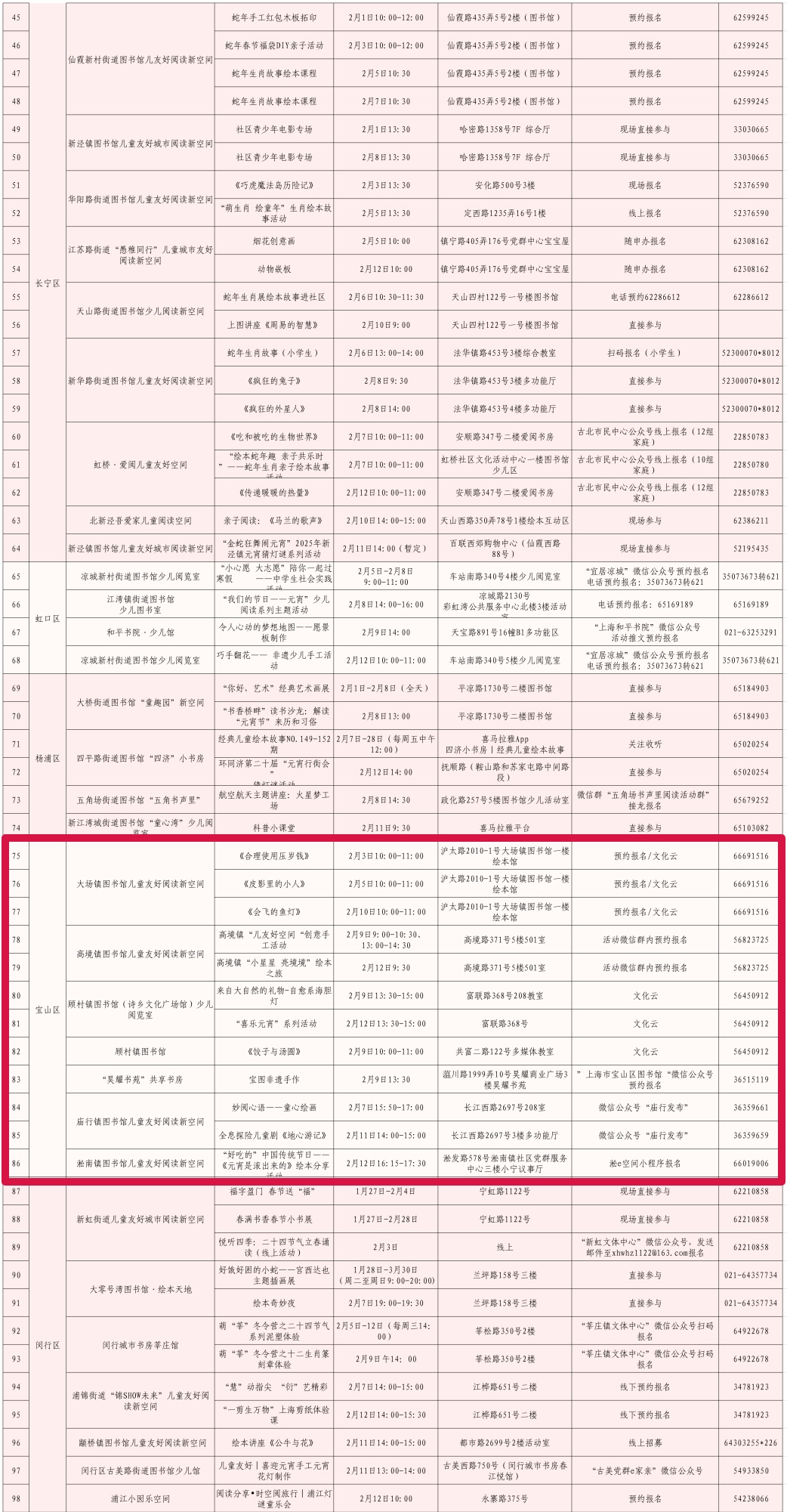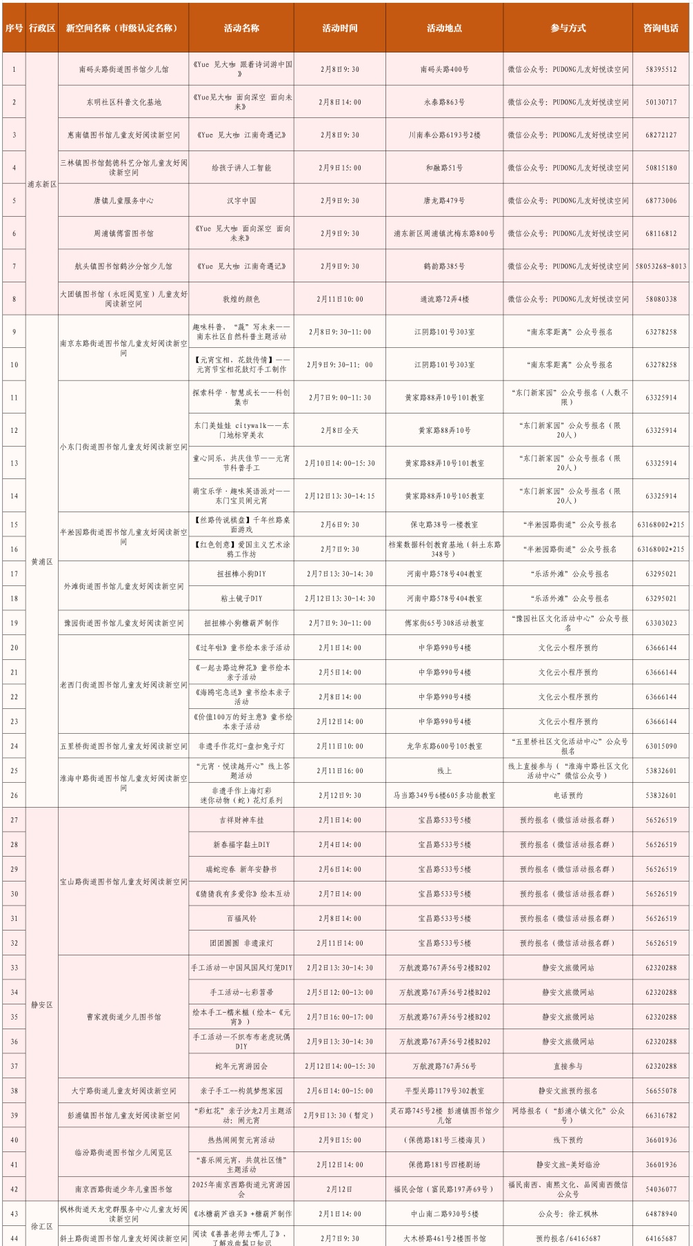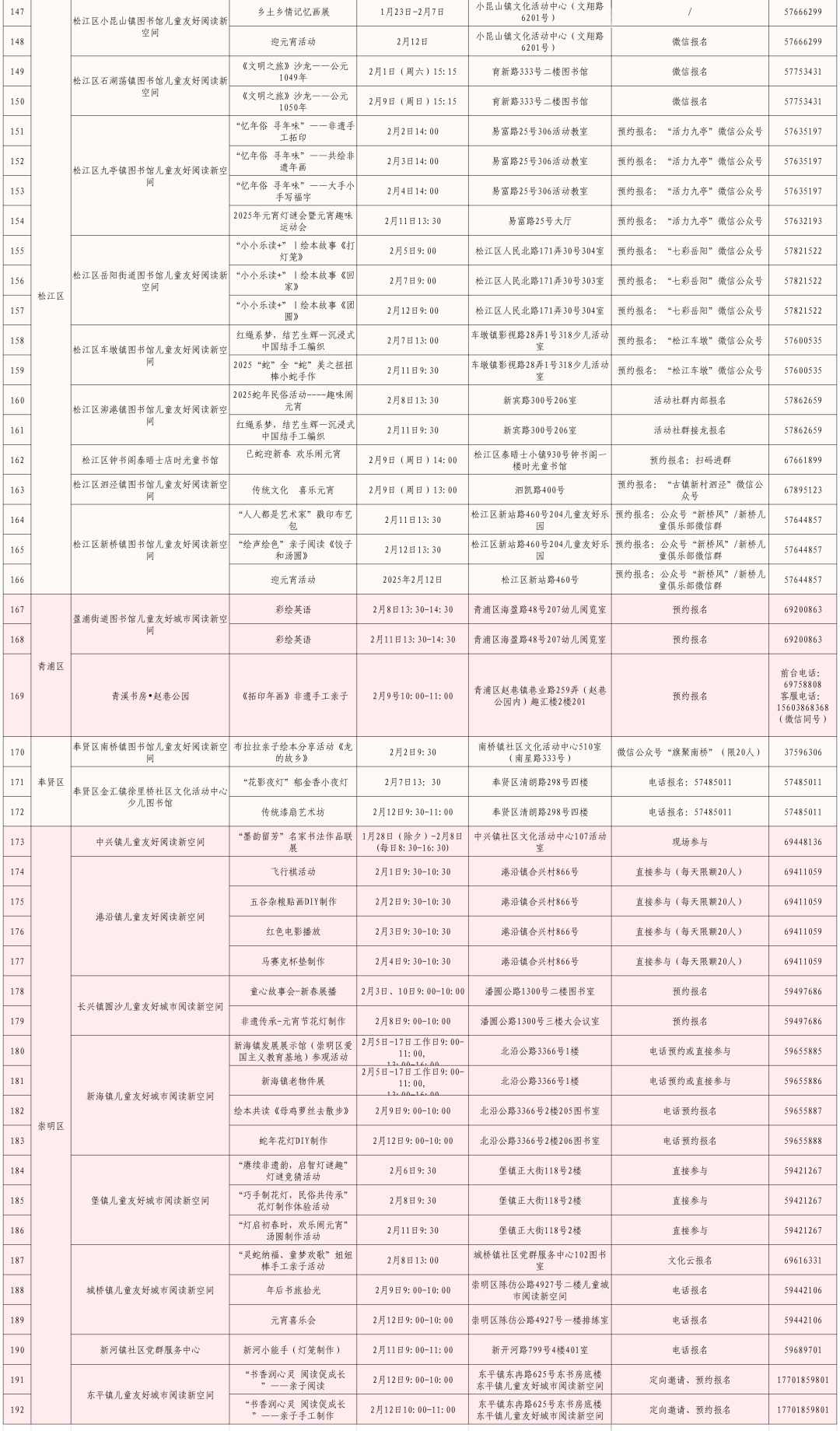 全市公共图书馆、儿童友好阅读新空间在春节期间推出各类丰富的阅读推广活动,用浓厚的书香浸润新年的美好。如上海图书馆将在东馆举办“邂逅·不只是书”主题文献展、原创绘本少儿插画征集作品展;少儿馆长风馆举办“小种子读书会”“童话故事的摆渡人”新春系列活动,并特设全家福涂鸦、新年祈福拓印等亲自互动DIY环节;全市157个儿童友好阅读新空间将在春节期间开展192场各类儿童阅读推广活动,进一步营造欢庆佳节、传承文化的浓厚氛围。