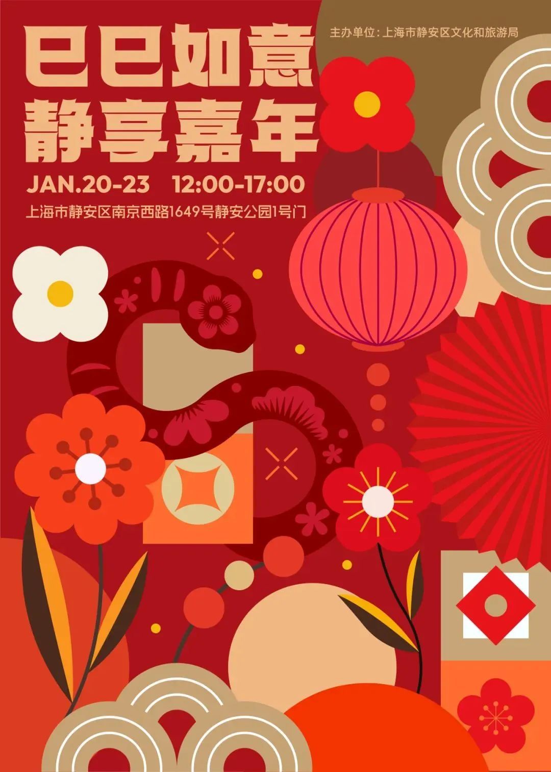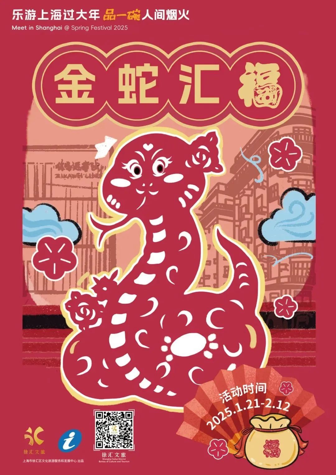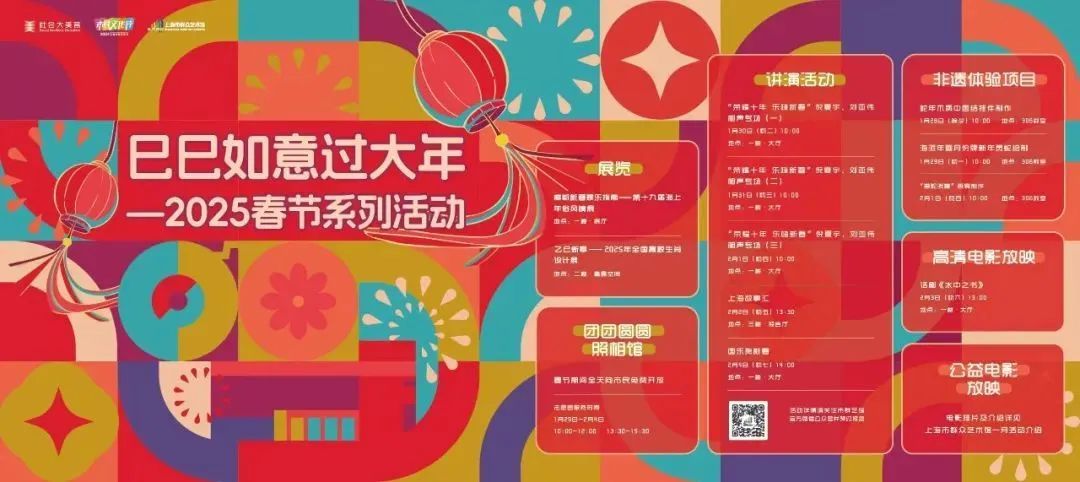 结合乙巳新年的蛇年主题,策划推出新年生肖主题活动,上海市群众艺术馆“巳巳如意过大年”春节系列活动,浦东图书馆“灵蛇瑞气迎新年——说习俗、写福字、送春联”活动,黄浦区“书香蛇年,悦读迎春” 新春主题创意体验活动,静安区“福里福气——迎新春送福字”主题活动。同时,全市社区文化活动中心都将组织“写福字”“送春联”“剪窗花”等传统手工活动,为市民送去新春第一声祝福。