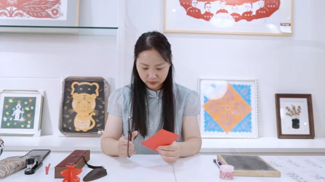 随着剪刀的一起一落,花鸟鱼虫灵动活泼,人物走兽栩栩如生,风景建筑气势恢宏,都在纸上鲜活呈现。