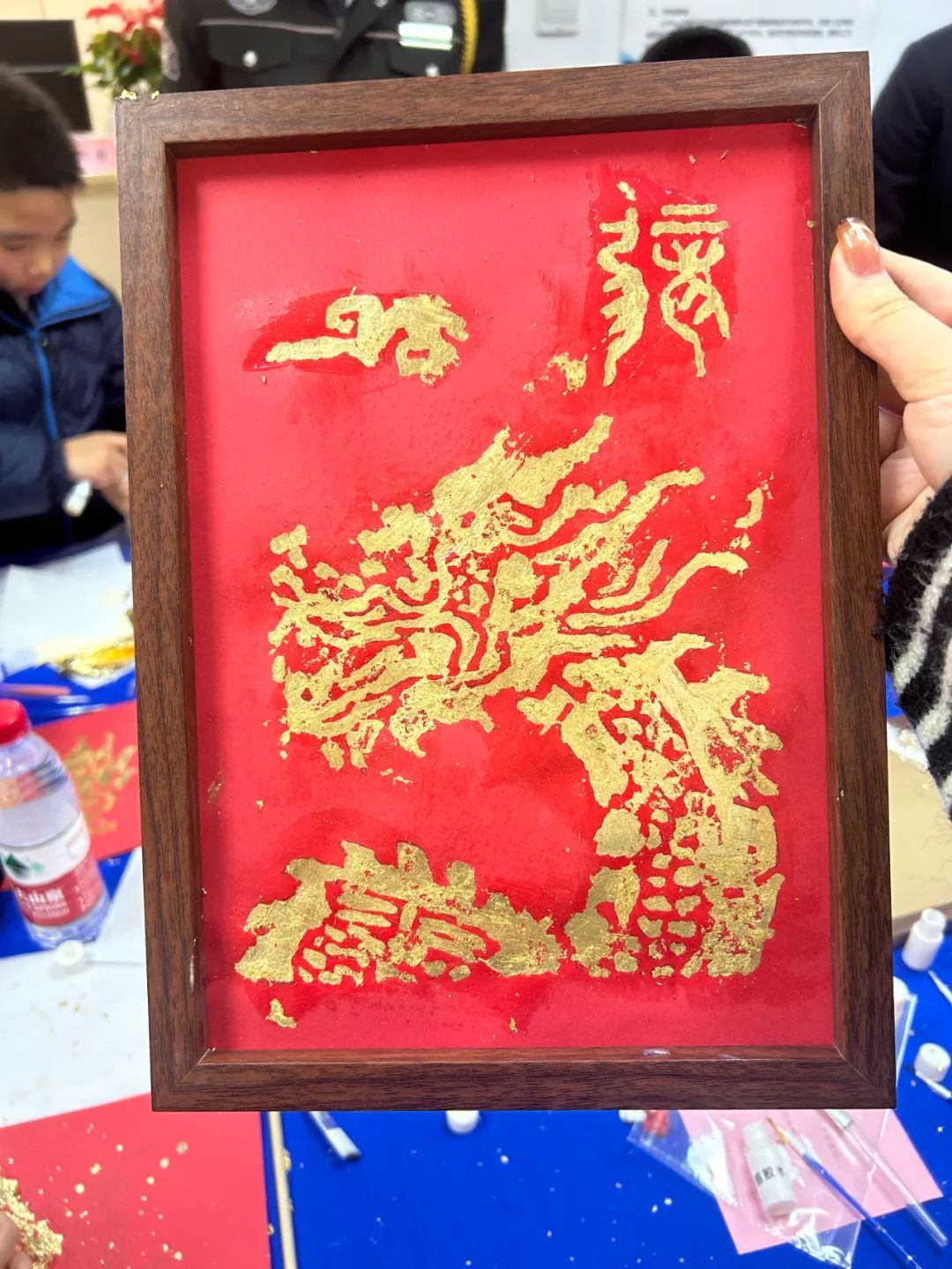 孩子们的作品各具特色,有的以传统的吉祥图案为主题,有的则融入了现代元素,展现了孩子们丰富的想象力和创造力。这些金箔画作品不仅是对传统技艺的传承,更是对新春佳节的美好祝愿。