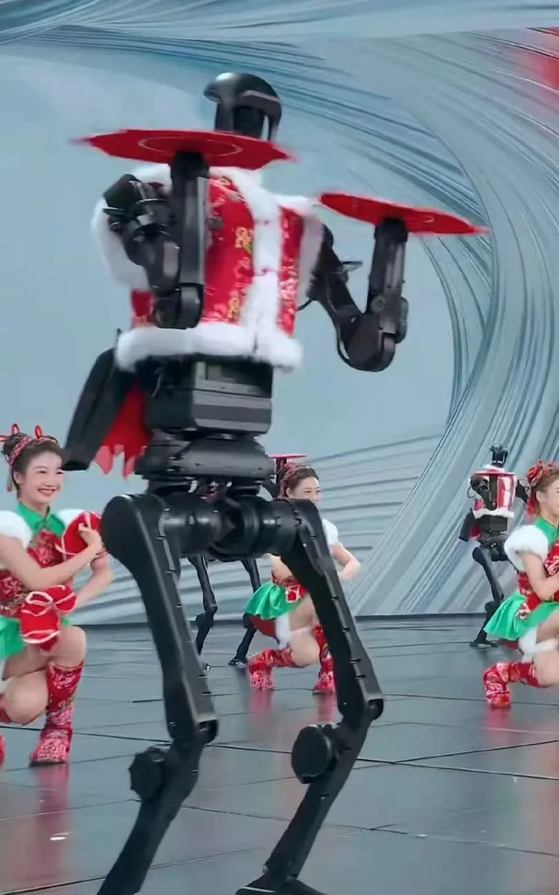 还有张艺谋导演带来的创意融合舞蹈《秧BOT》,机器人穿着花袄扭秧歌转手绢。