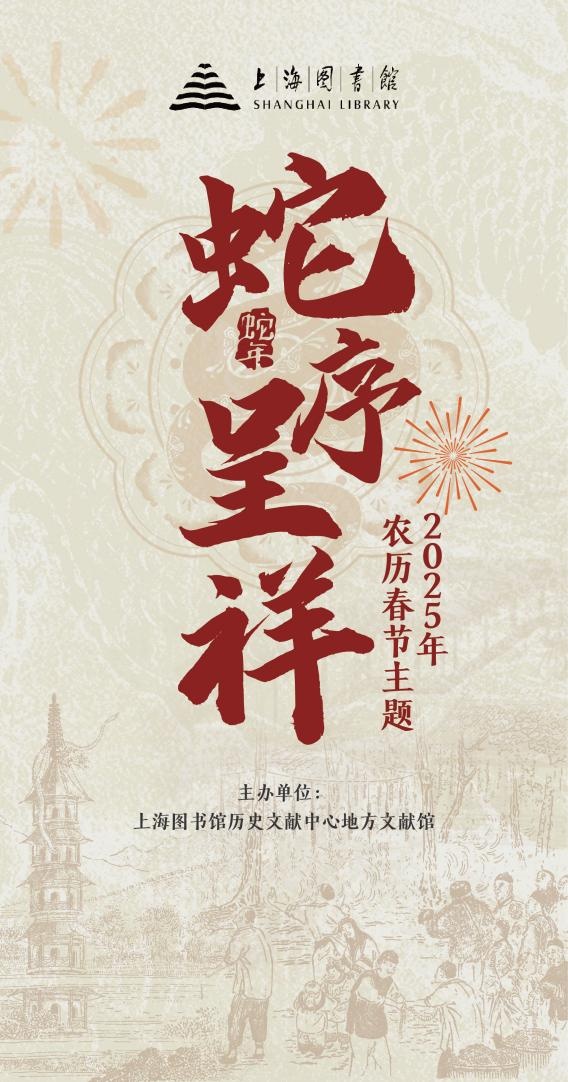 乙巳新春将至,上海图书馆东馆地方文献馆以“蛇序呈祥”为主题,举办新春文化展览,并策划多项活动以飨读者。由“数九消寒”填字游戏,到“升卿献瑞”集章活动,多重富含新春热闹氛围与传统文化气息的小游戏敬候您的光临。