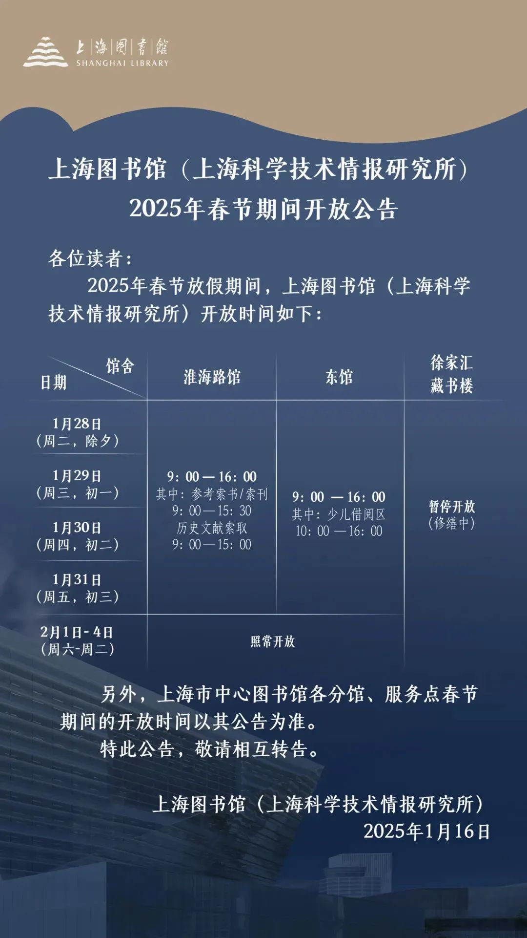 上海图书馆春节开放时间