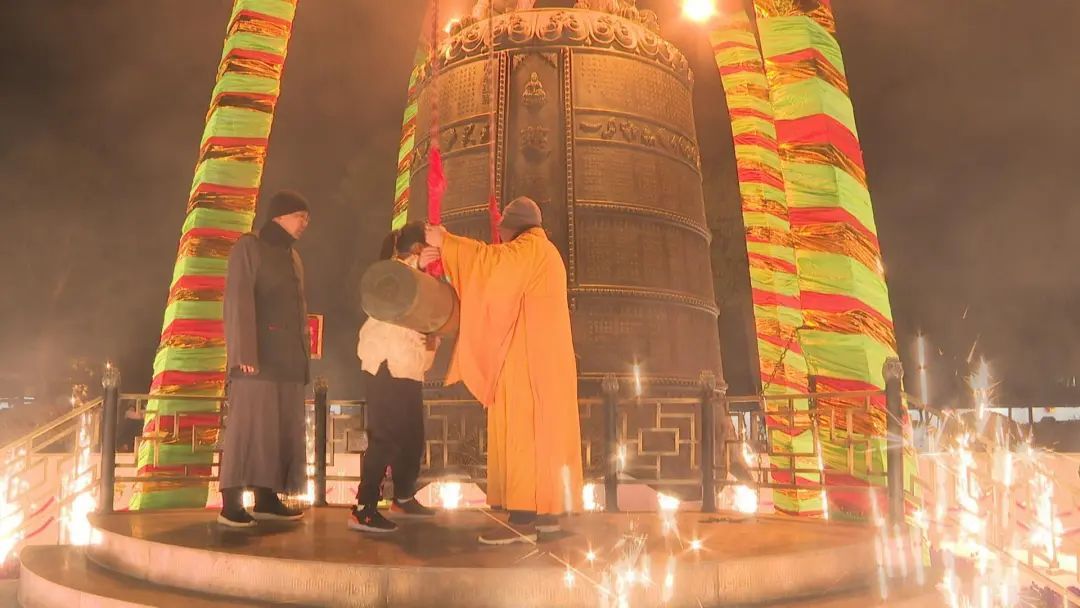 撞钟祈福是中华民族辞旧迎新、祈福纳祥的传统文化活动。除夕之夜许多市民就来到古刹寺院,在响亮的钟声中迎接农历新年的到来。