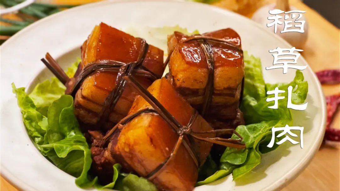 稻草扎肉寓意“鸿运当头”,这道菜色泽红亮、肉质酥烂,是新春餐桌上的红火美味,象征着好运连连、丰衣足食的新一年。