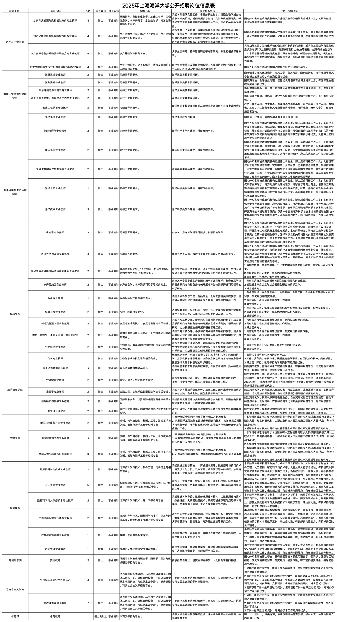 市人社局介绍,上海海洋大学现面向社会公开招聘103名专任教师(含高层次人才)。应聘者请根据上海海洋大学人才招聘网公布的岗位相关要求,网上填报信息。专任教师岗位的报名截至时间为2025年12月31日(招满即止)。每名应聘人员最多允许申请一个岗位,超过则无法再提交申请。详见↓