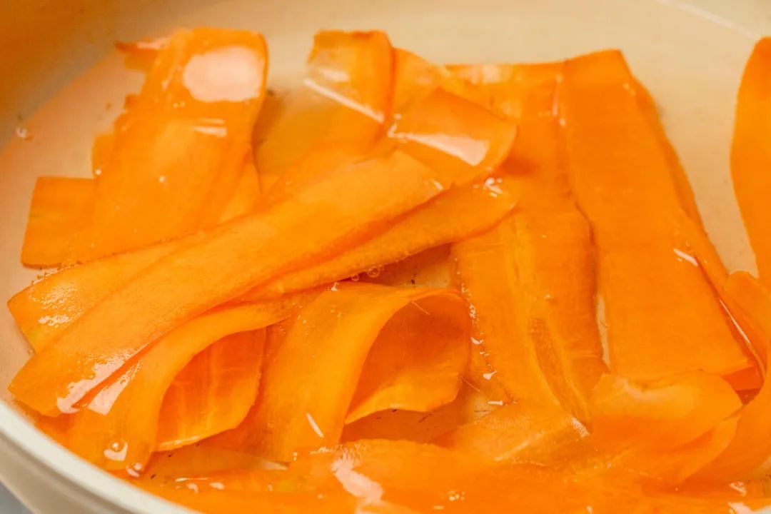 3.将萝卜刨成薄片,水煮1分钟后,捞出过凉水。