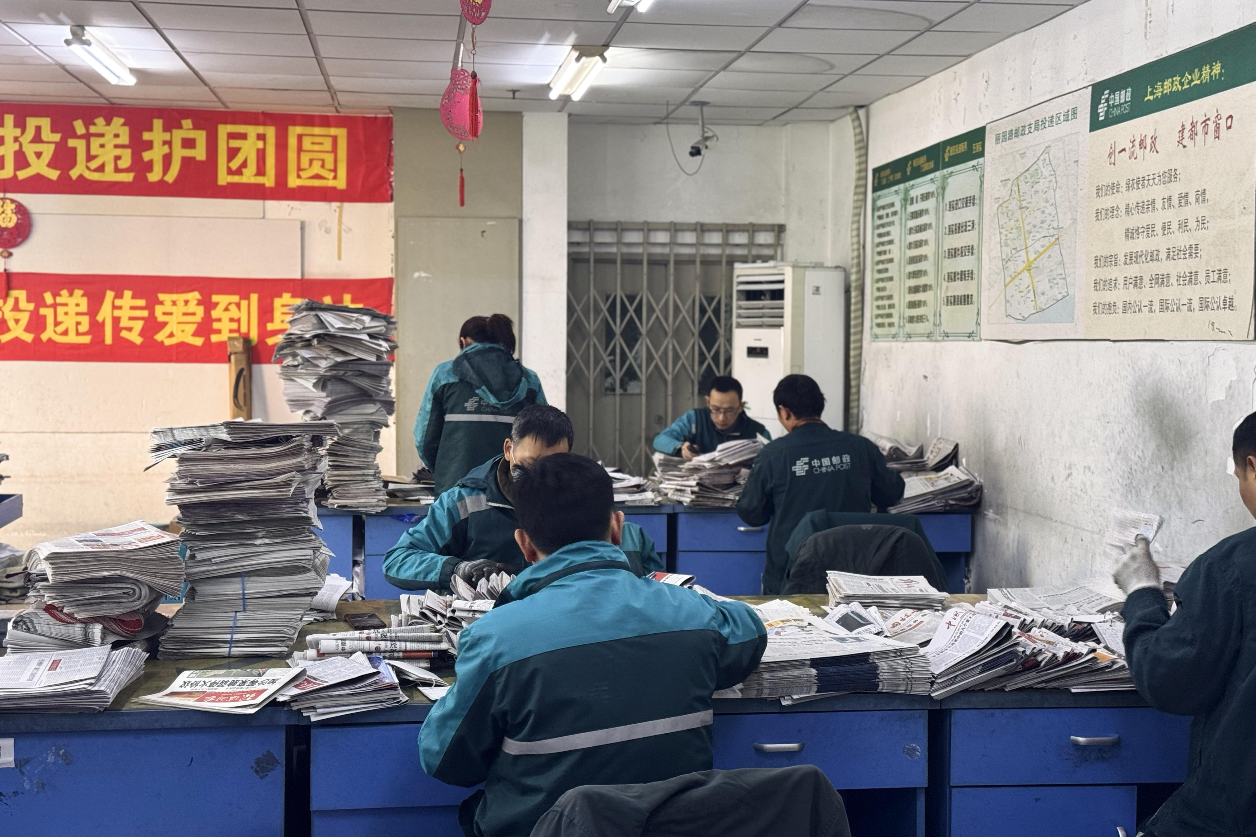 据介绍,丽园路邮政支局的投递部门和下辖马当路营业部是整个支局最为忙碌的“前沿阵地”。两个团队一共由60余名员工组成,外来务工人员占到了80%以上。他们每日所承担的投递任务相当艰巨,其中各类报刊的日均投递量高达20000余份,平信与挂号信的日均投递量也达到了1000余件。此外,还有各类包裹、快递类邮件,每天有12000余件需要投递……在这些数字背后,是每一位投递员不辞辛劳、风雨无阻的身影,他们像陆师傅一样放弃了与家人团聚的机会,选择坚守在岗位上,用责任与担当铺就了一条条温暖的传递之路,成为这个节日里最动人的风景线!