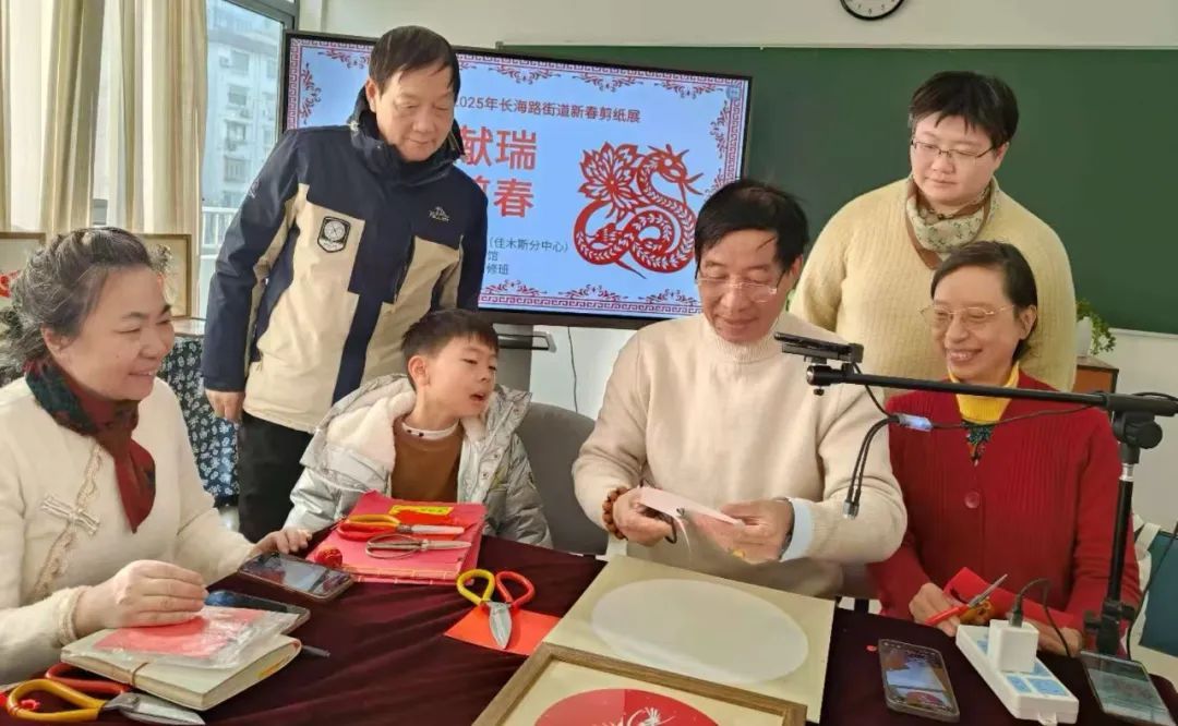 转眼,郑树林从艺已经40多年,他开始思考如何将自己热爱的“上海花样经”传承下去。一次偶然的机会,他在短视频平台上看到了剪纸艺人的直播,于是紧跟时代步伐,也开起了直播。但是,郑树林不露脸,只露手,剪什么“花样”也是由评论区粉丝来指定。